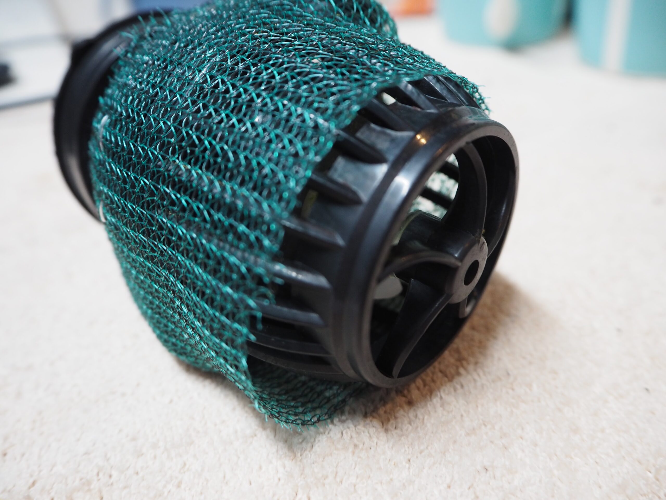 そして、浮遊するということはまた水流ポンプに巻き込まれる可能性があるので、うっかり尻尾が触っても吸い込まれないよう両側とも対策。時々掃除してゴミを取り除かないといけないが。