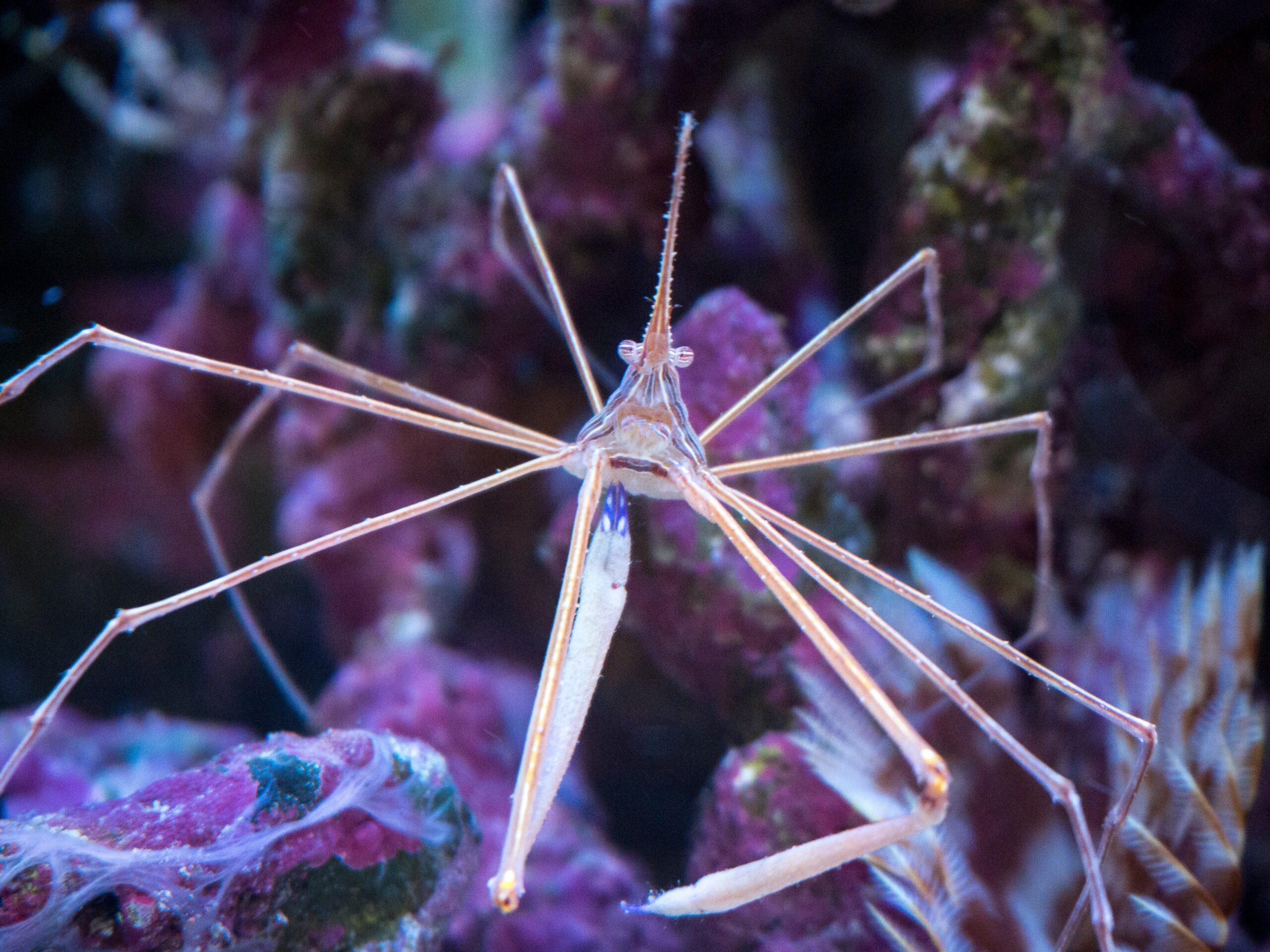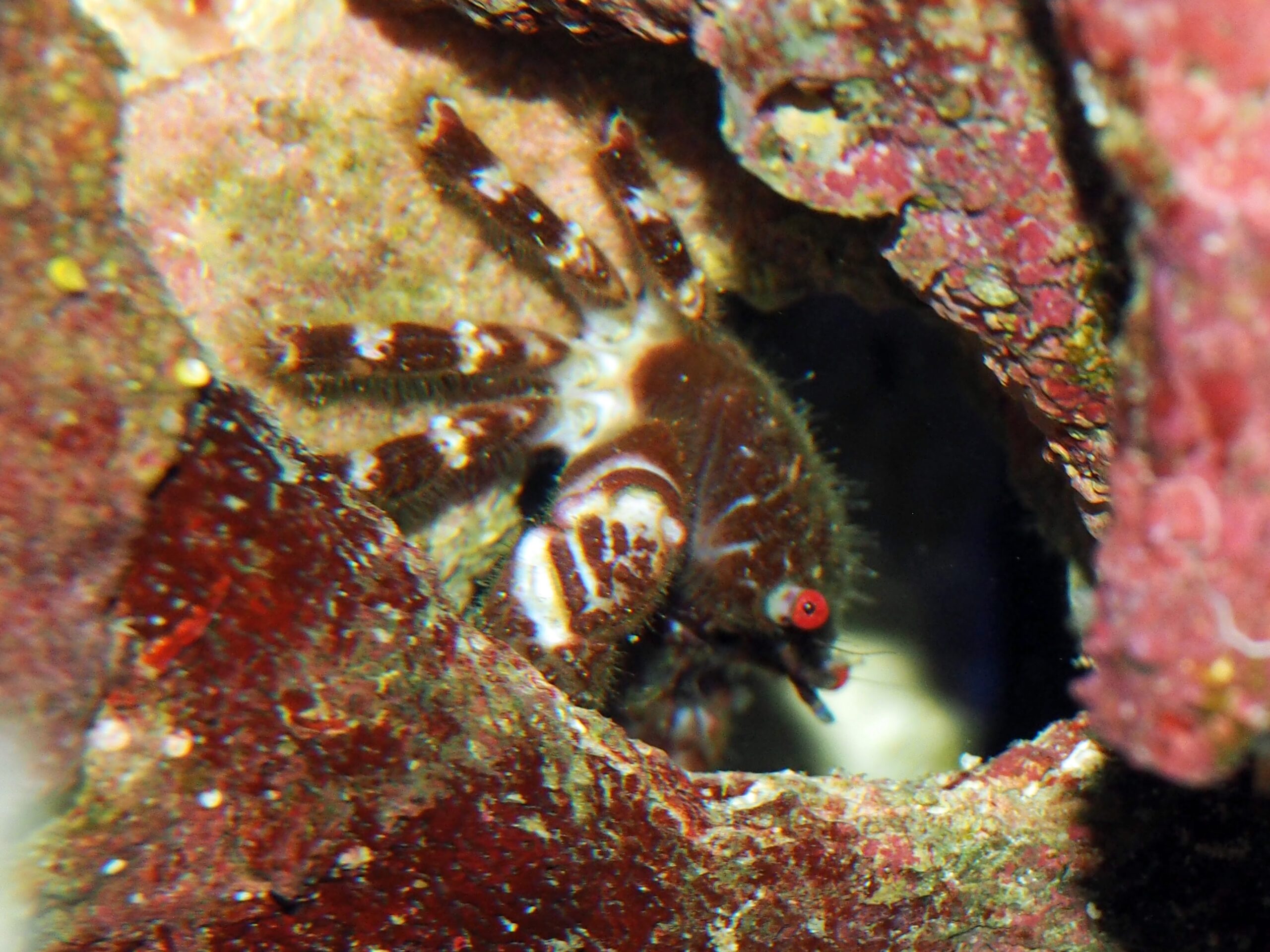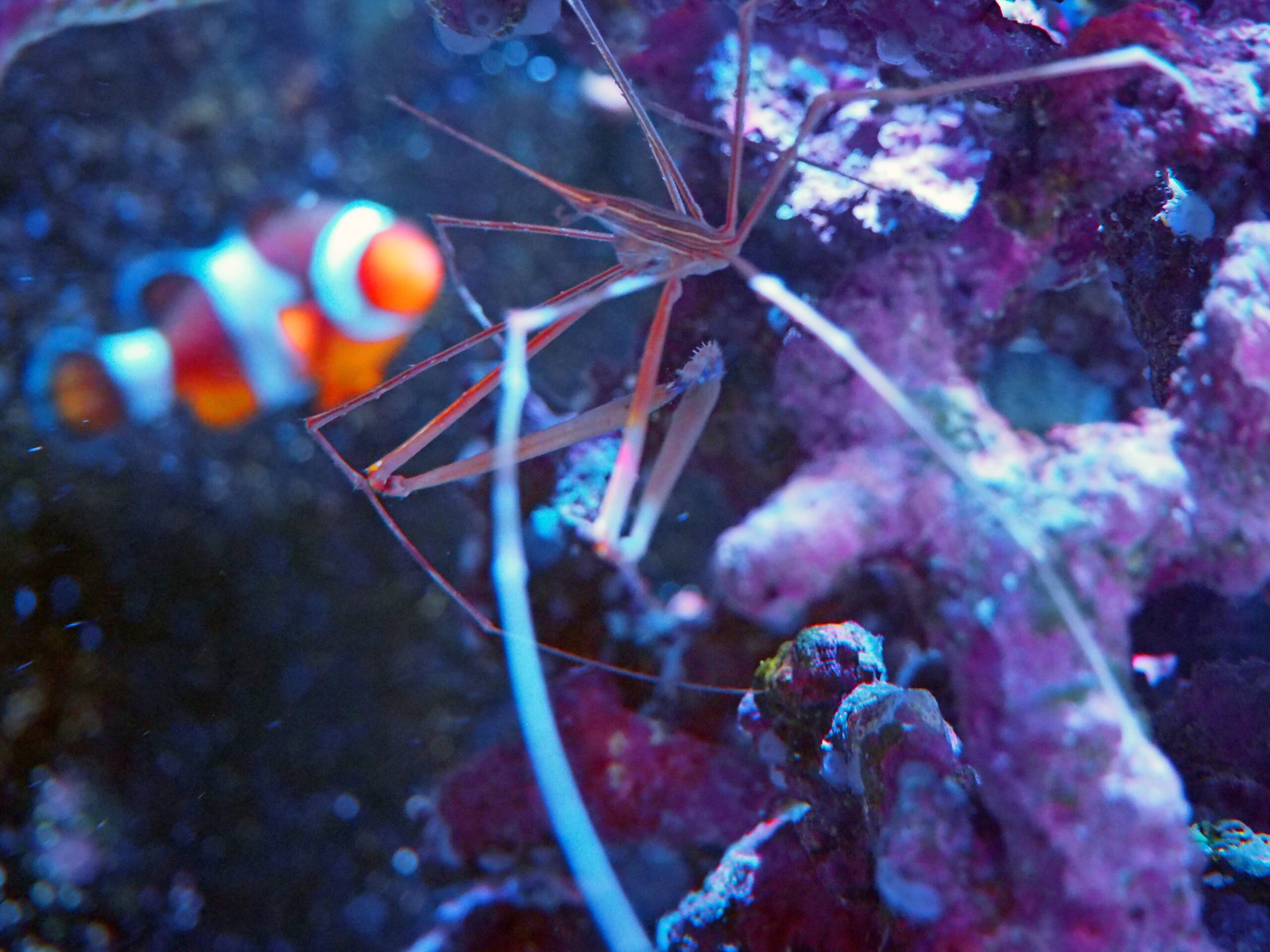 前回ウミケムシ大量発生の模様をお伝えしましたが、ほとんどのの生物たちが嫌がる中でウミケムシを食べるというツワモノ、アロークラブを水槽内にお迎えいたしました。