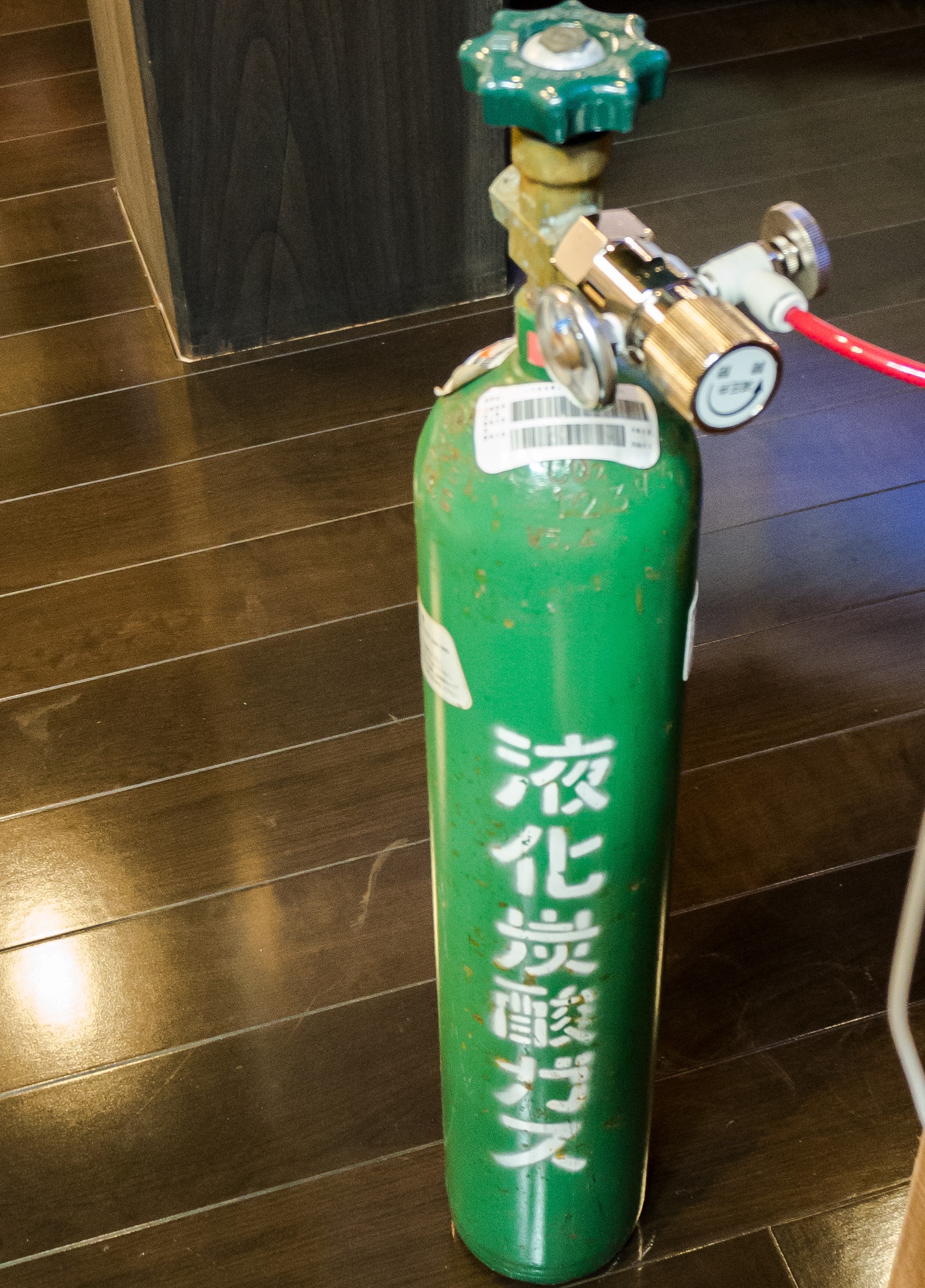一般的に酒屋でレンタルが多いようだが、だいたいサイズがでかいのと毎回違うボンベのため当たりはずれもあるという話もあり、毎度のNMCで相談してすっきり小型の2.5kg買い取りにしました。