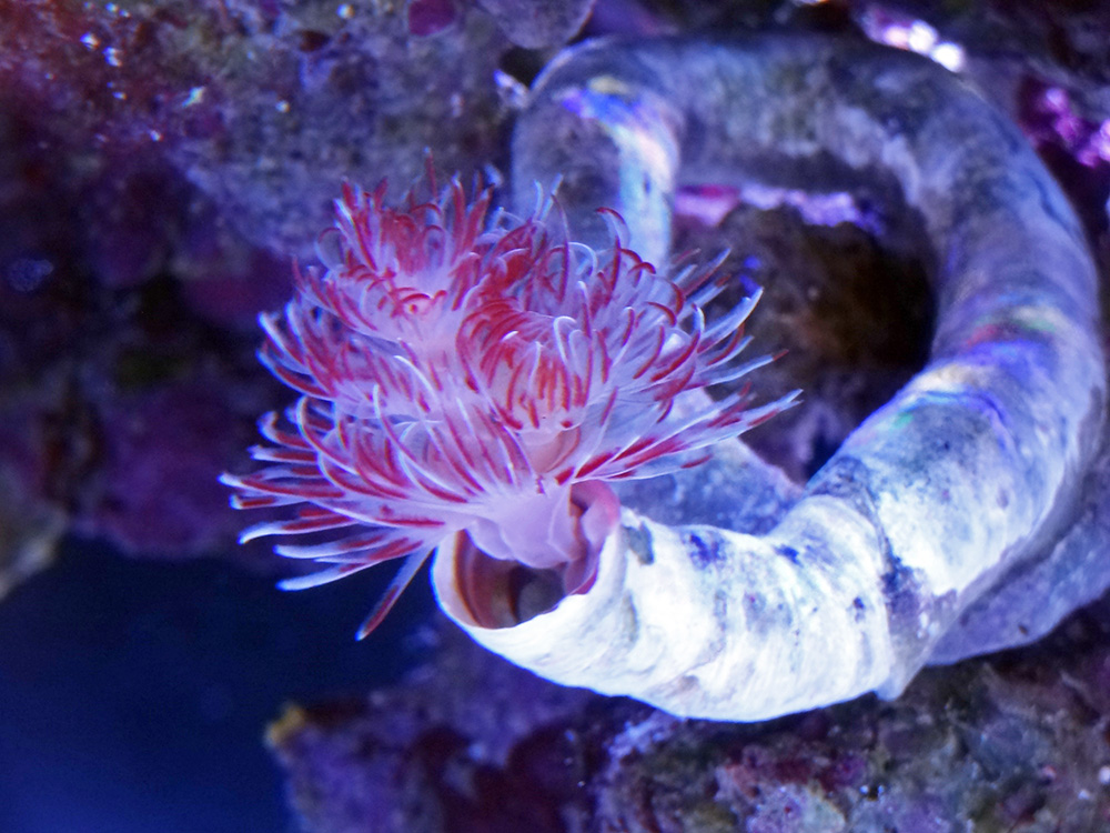 今回のは専用のリアクターで、省スペースで海草を効率的に育成する筒なので魚の隔離箱としては向かないが、細長い筒を上から下まで貫くスパイラルLEDがなんかすごい。夜間は燈籠みたくなりそうだ。