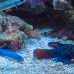 クマノミペアはなんかオーバーフローパイプ下の背後の角が定位置となっているので驚かすこともないし、カエルウオもギンポがいなくなってからはすっかり大人しくなりマンダリンと仲良く並んでたりする。