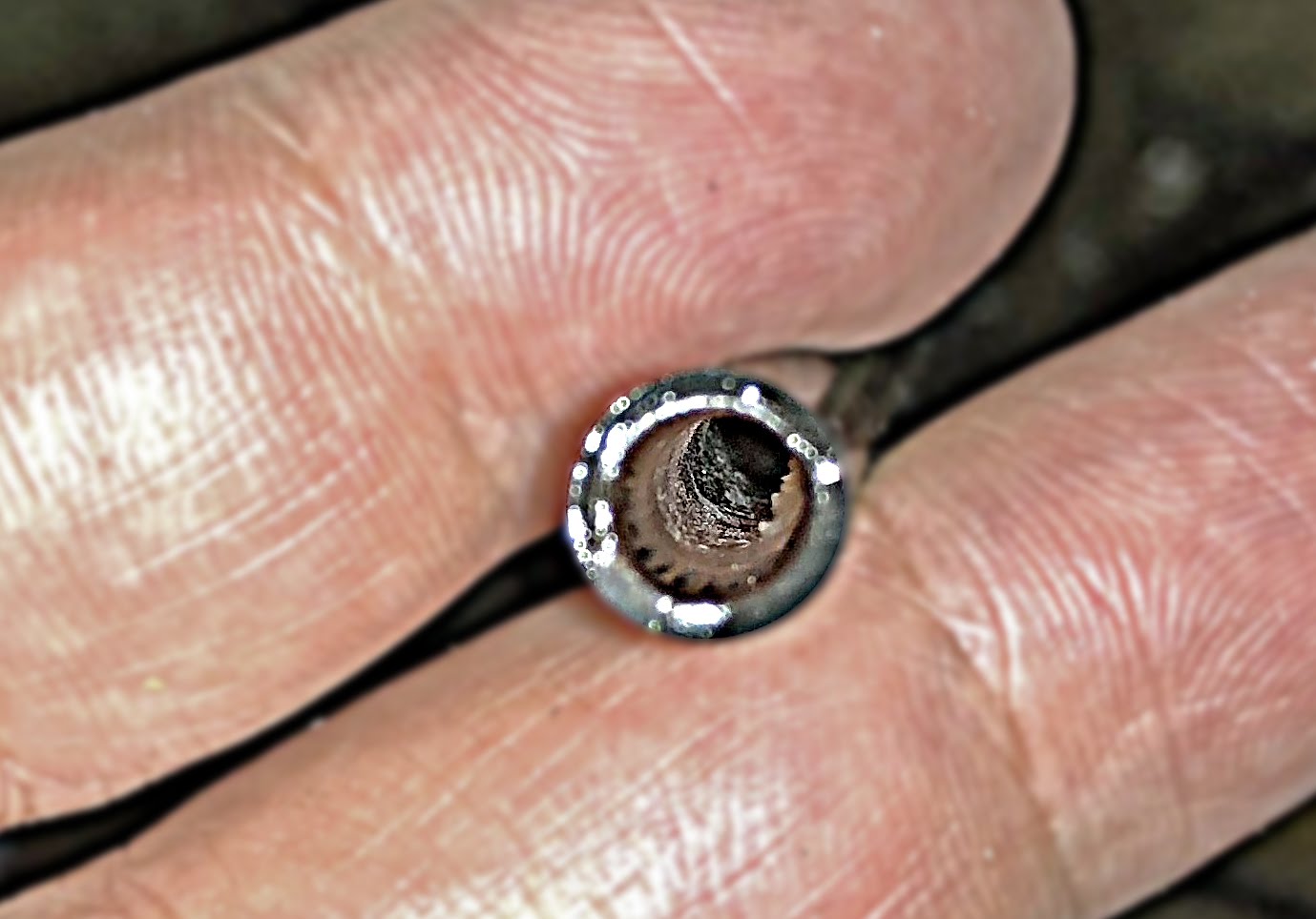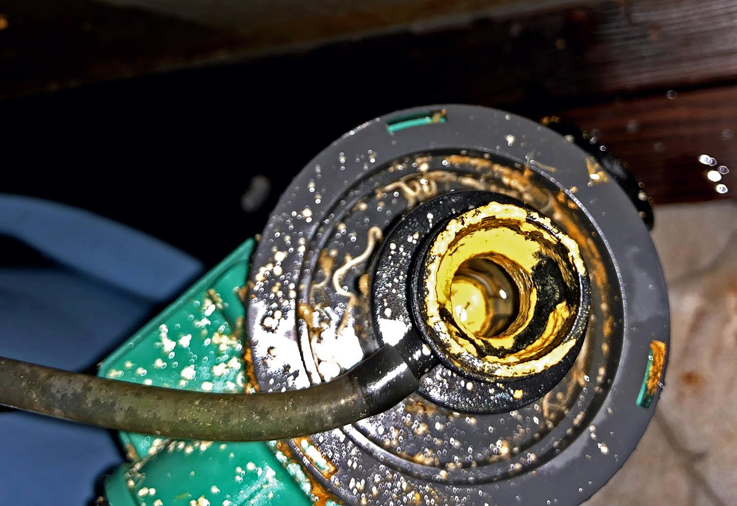 そしてチューブを外してみると、思ったほどではなかったが、何やら茶色いものがぎざぎざとへばりついていたのでここも掃除。