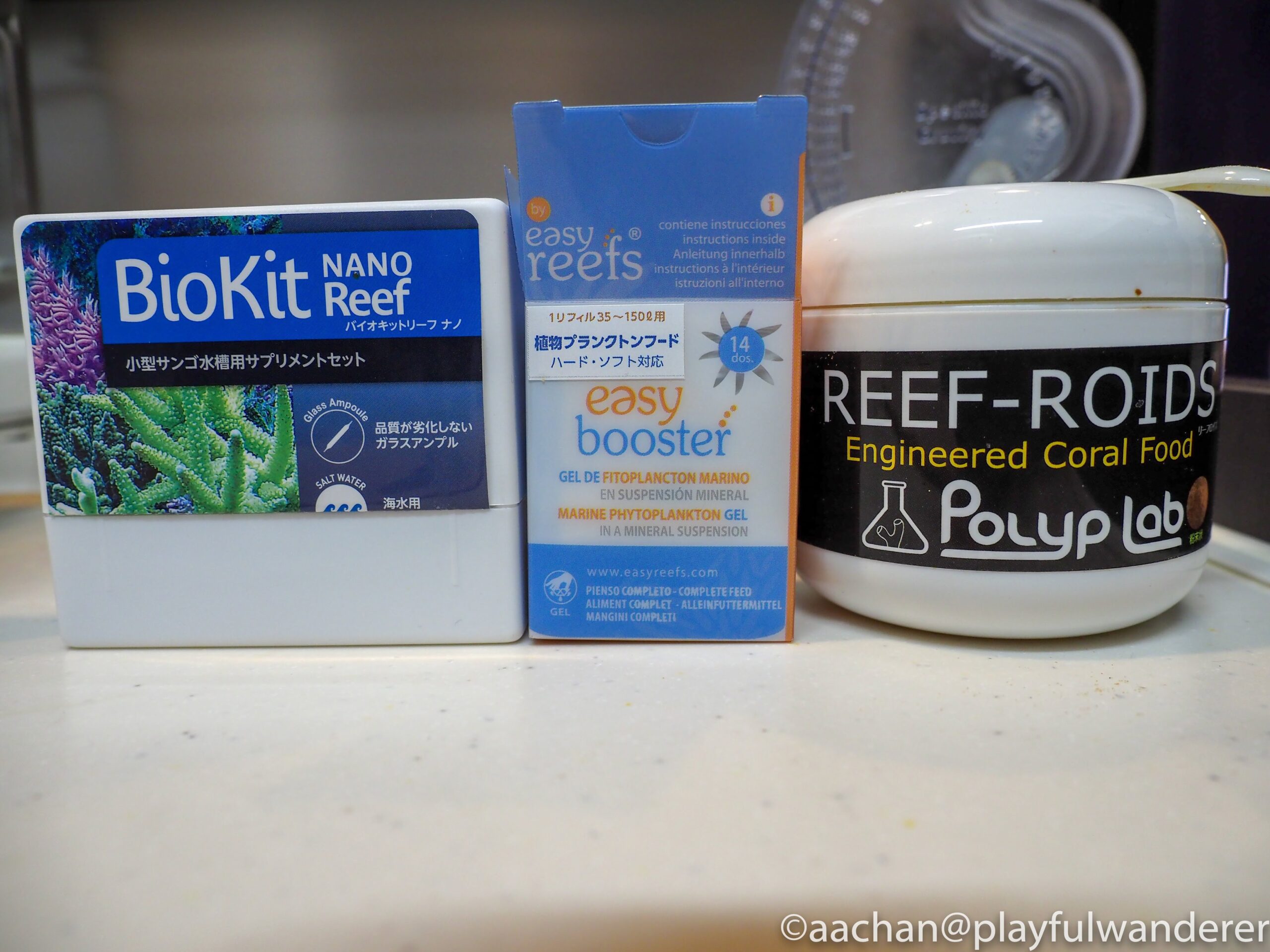 おまけで現在サンゴの餌はこのあたりを日によって変えたりブレンドしたりしています。