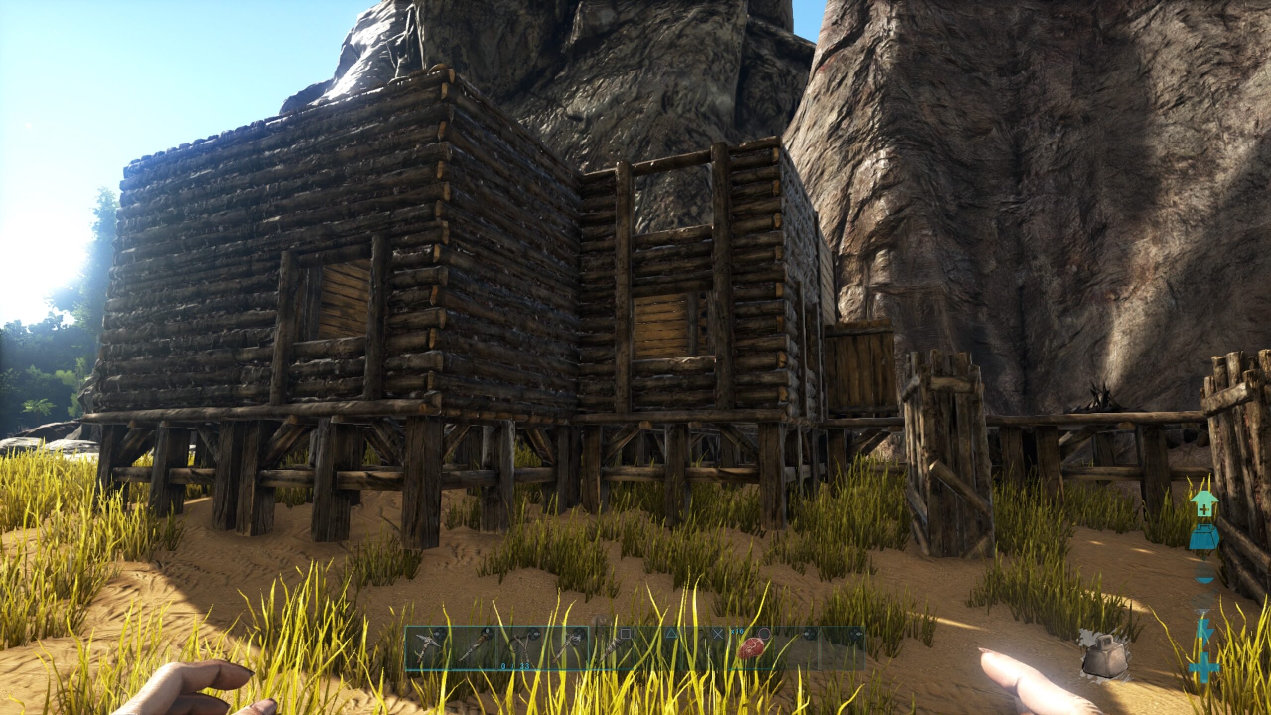 気がついたら木造住宅が作れるようになっていたので、周囲に危険肉食生物がいない崖際に拠点を構えることにした。