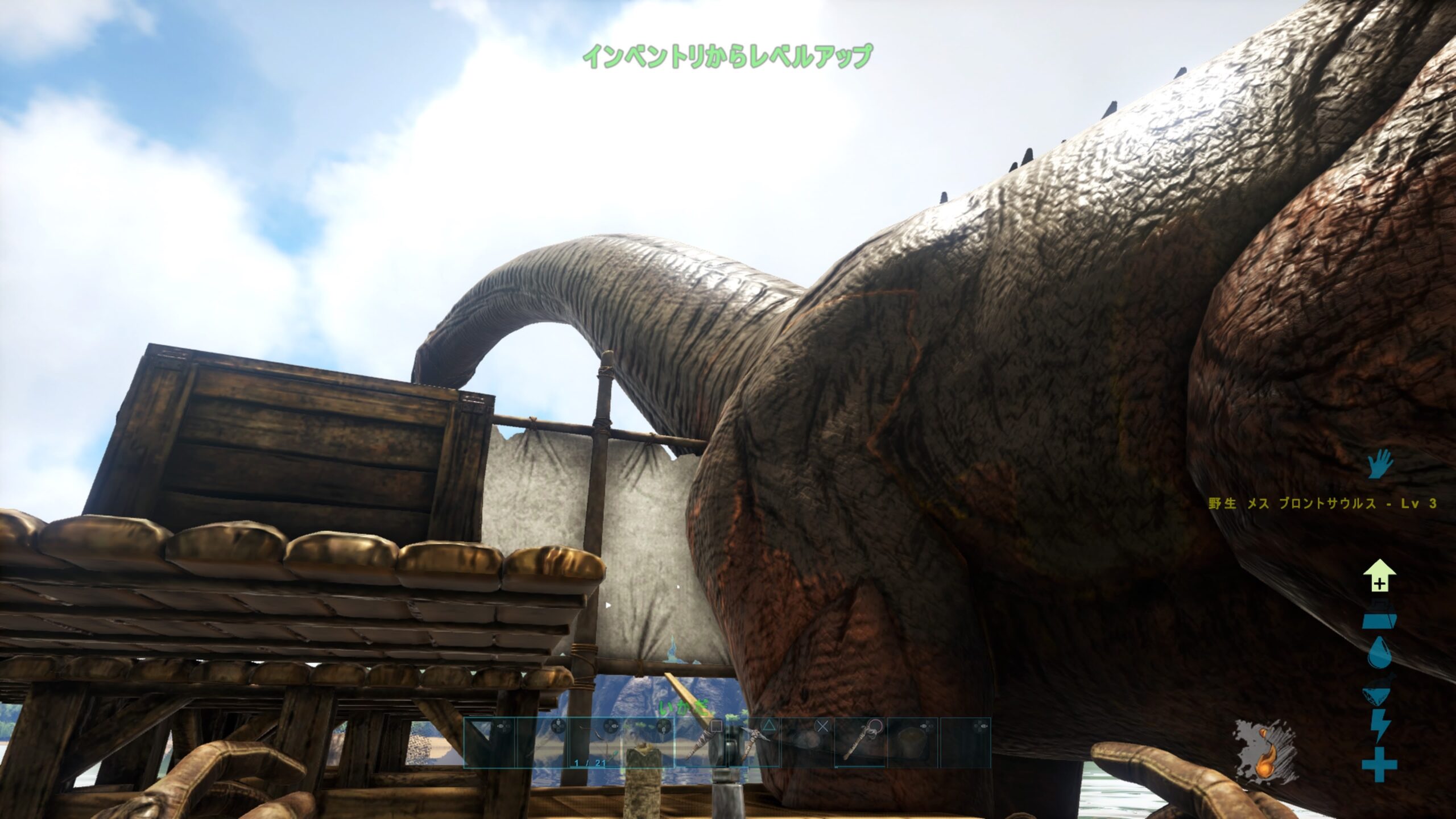しかし、現時点ではおとなしい草食系と翼竜しかいないようで、島中歩き回ってもまったく襲われなかったのは好ましい。ラブ♡ピース!ヽ(‘ ∇’ )ノ