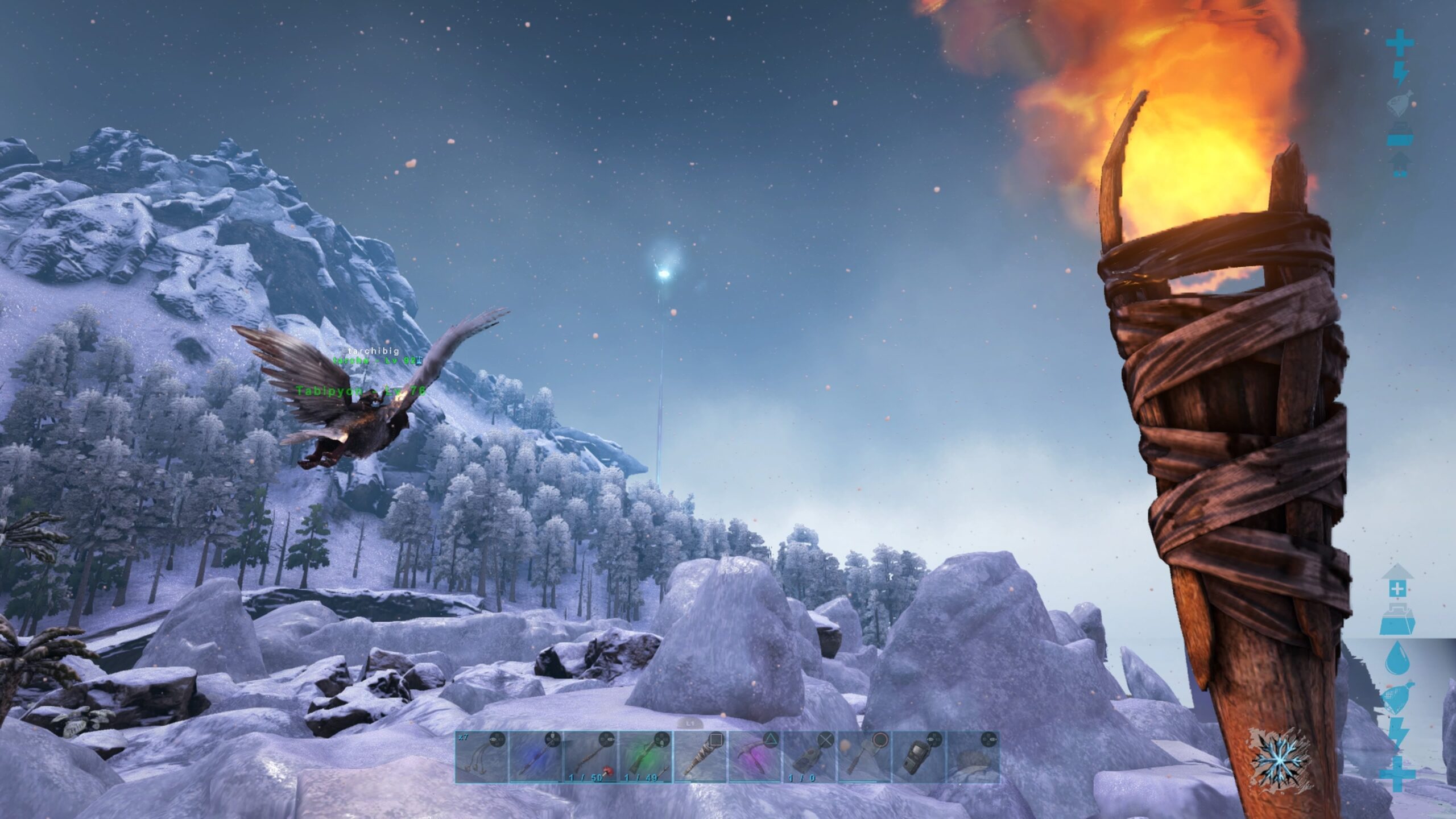 そのまま西へ向かえばいつもの雪原拠点へたどり着いた。