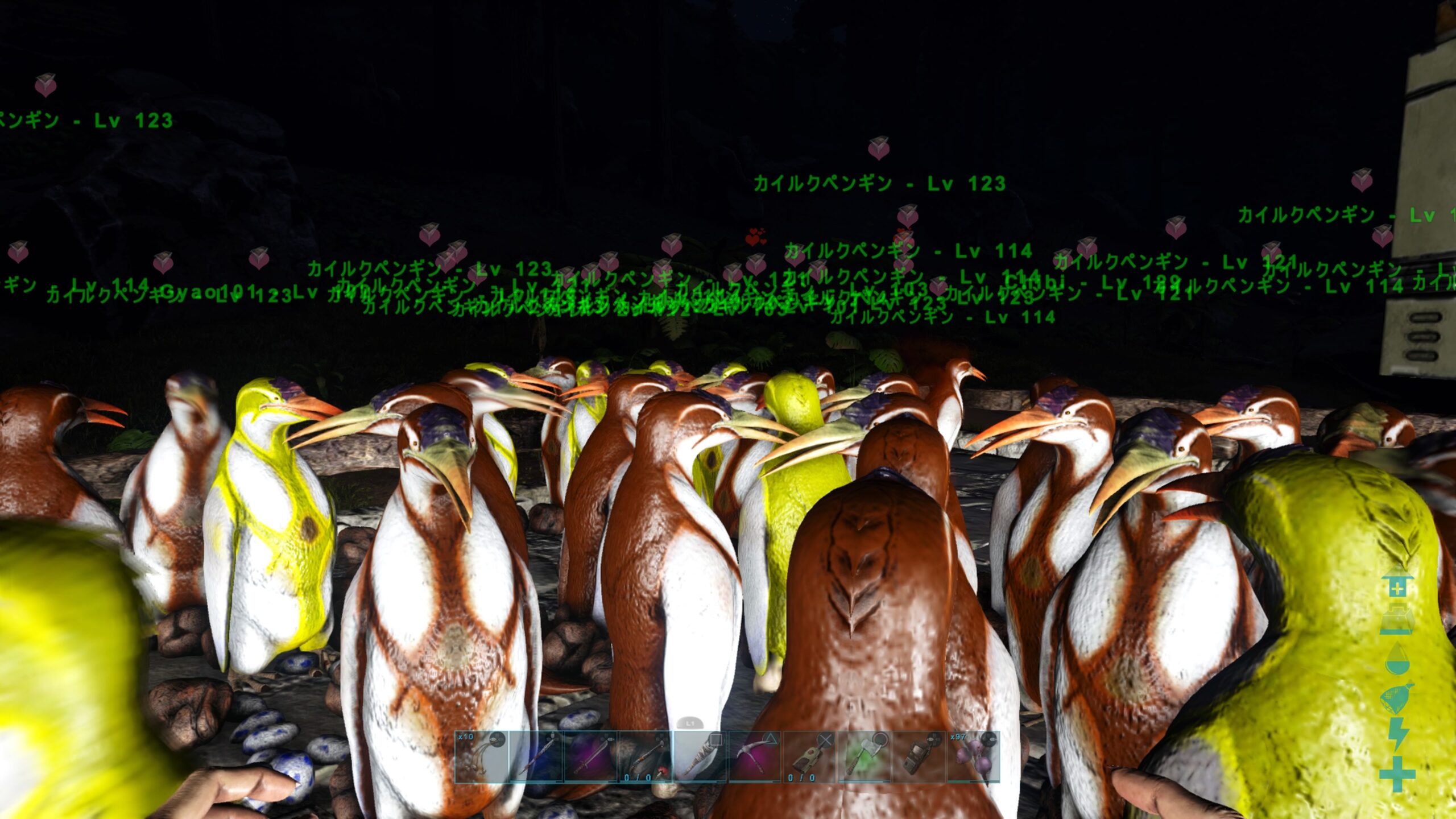 ペンギンたちはポリマー用だが放っておくと旺盛な繁殖力でとんでもない寿司詰め状態になって、拠点周辺のラグがひどいことになるためポリマーを大量に使う生産物を吟味しはじめる逆転現象が起こりつつある。