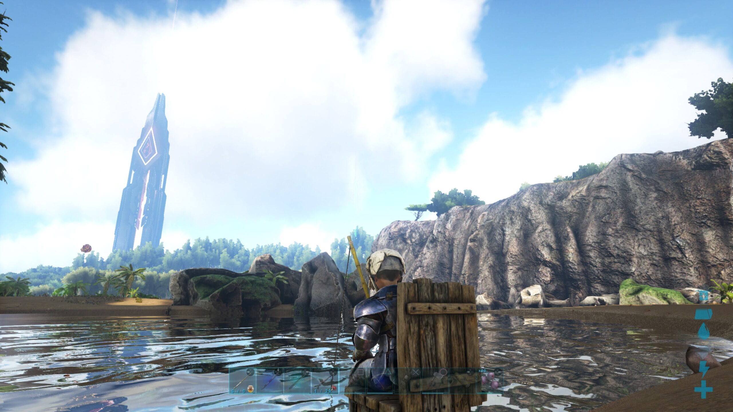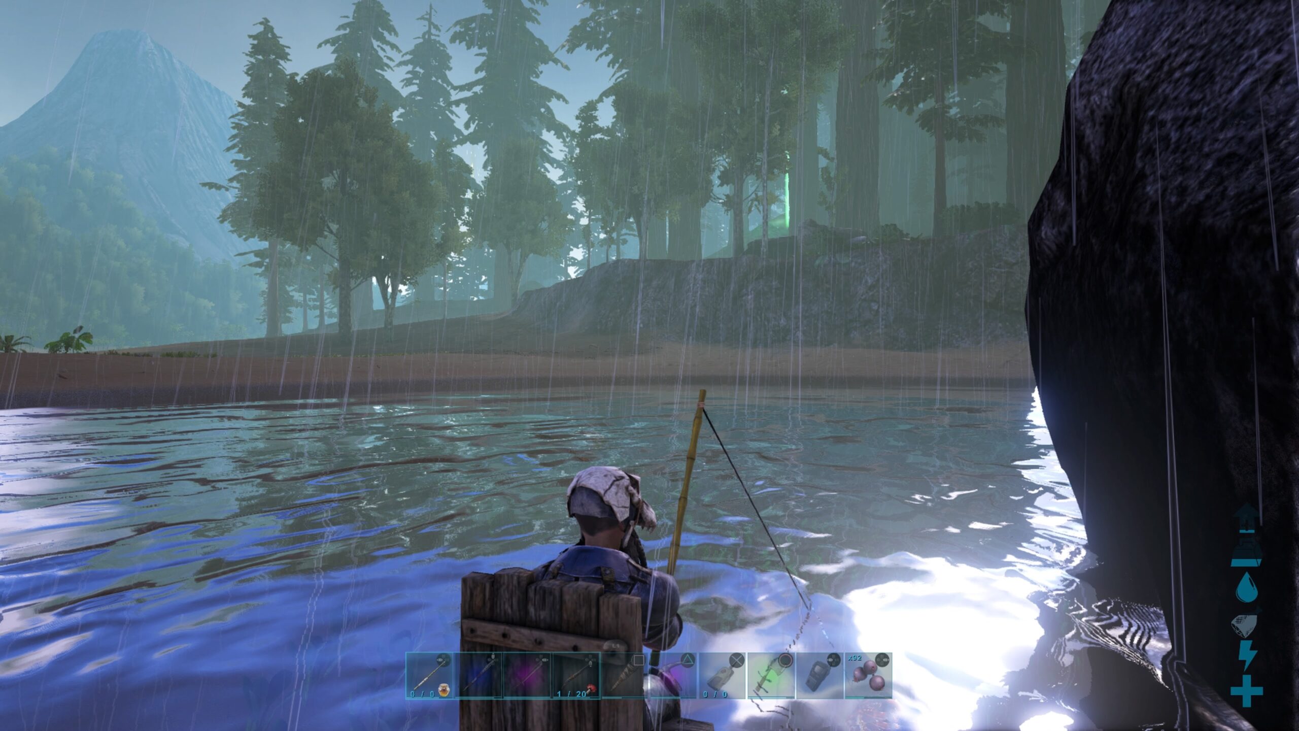 釣りの仕方はいろいろなところで公開されてるが、まずはエングラムで作成できる木のイスかベンチを作成し、設置して座る必要がある。