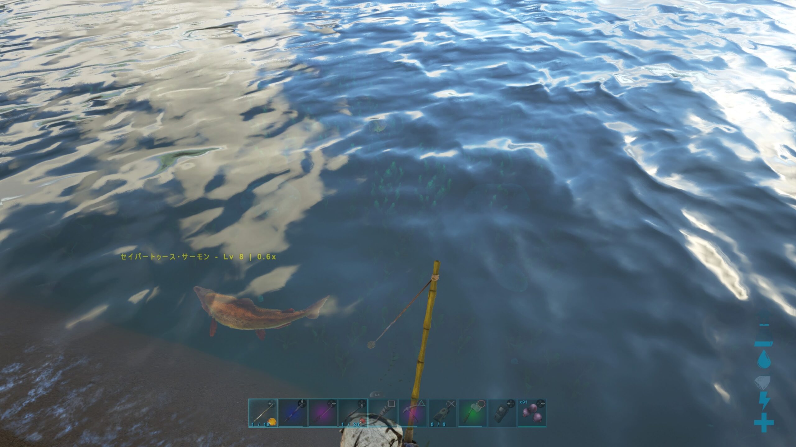 2.その餌がセットされた表示になった釣竿アイコンをショートカットにセットし実行すると釣竿を持つ