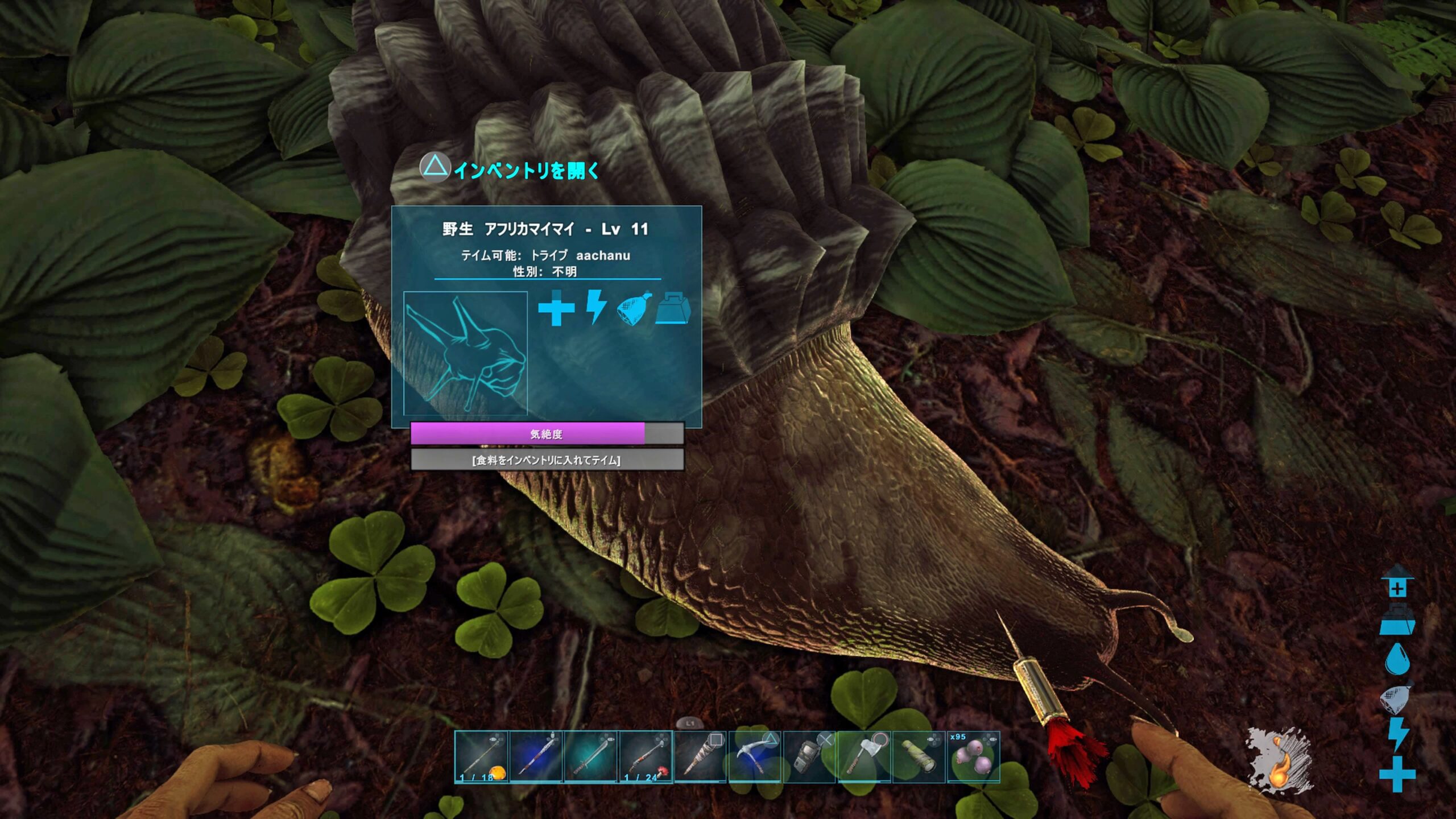 一番入手しやすくスタックできる樹液はシーラカンスしか食いつかないらしい。