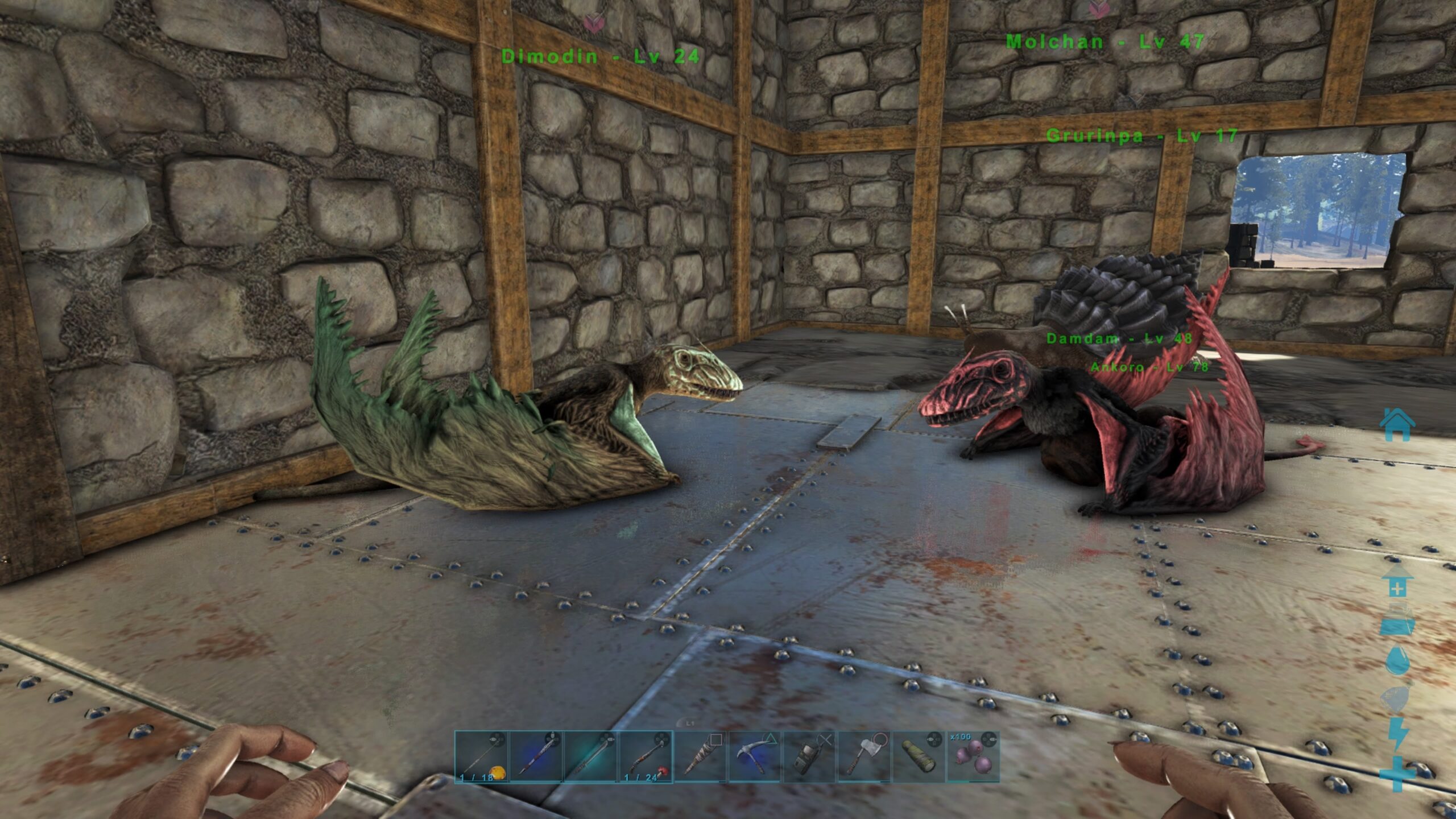 ずっと同じところに座り続けてるのも痔になりそうなので、気分を変えてちょい先の沼の方に移動する途中でなかなか手ごろなレベルのディモルフォドンを捕まえた。(投げ縄、麻酔銃、大トロで)