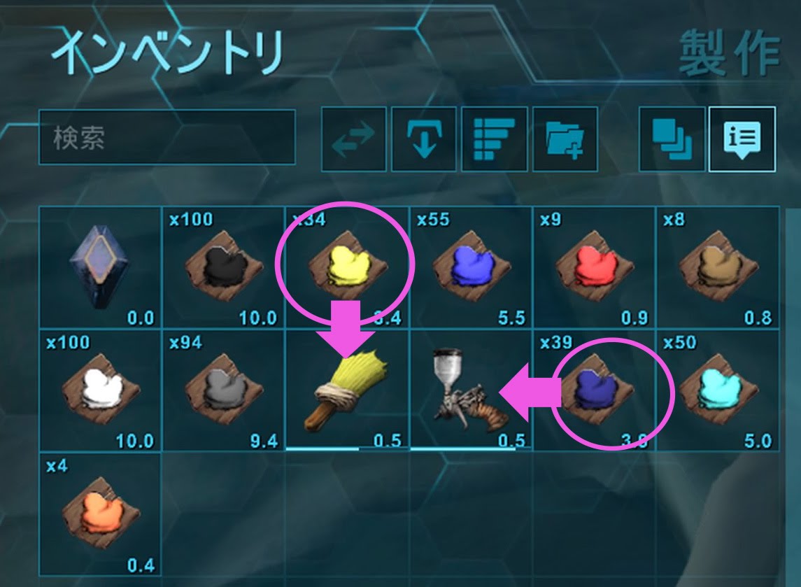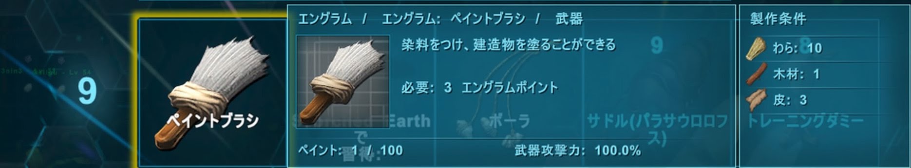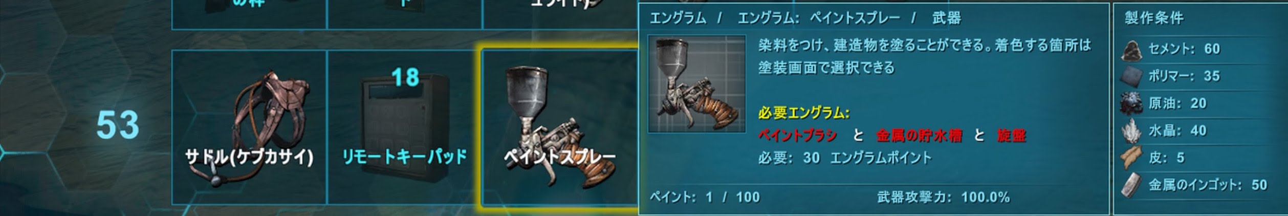 塗るために必要なのは、エングラムの9で取得できる「ペイントブラシ」か53で取得できる「ペイントスプレー」