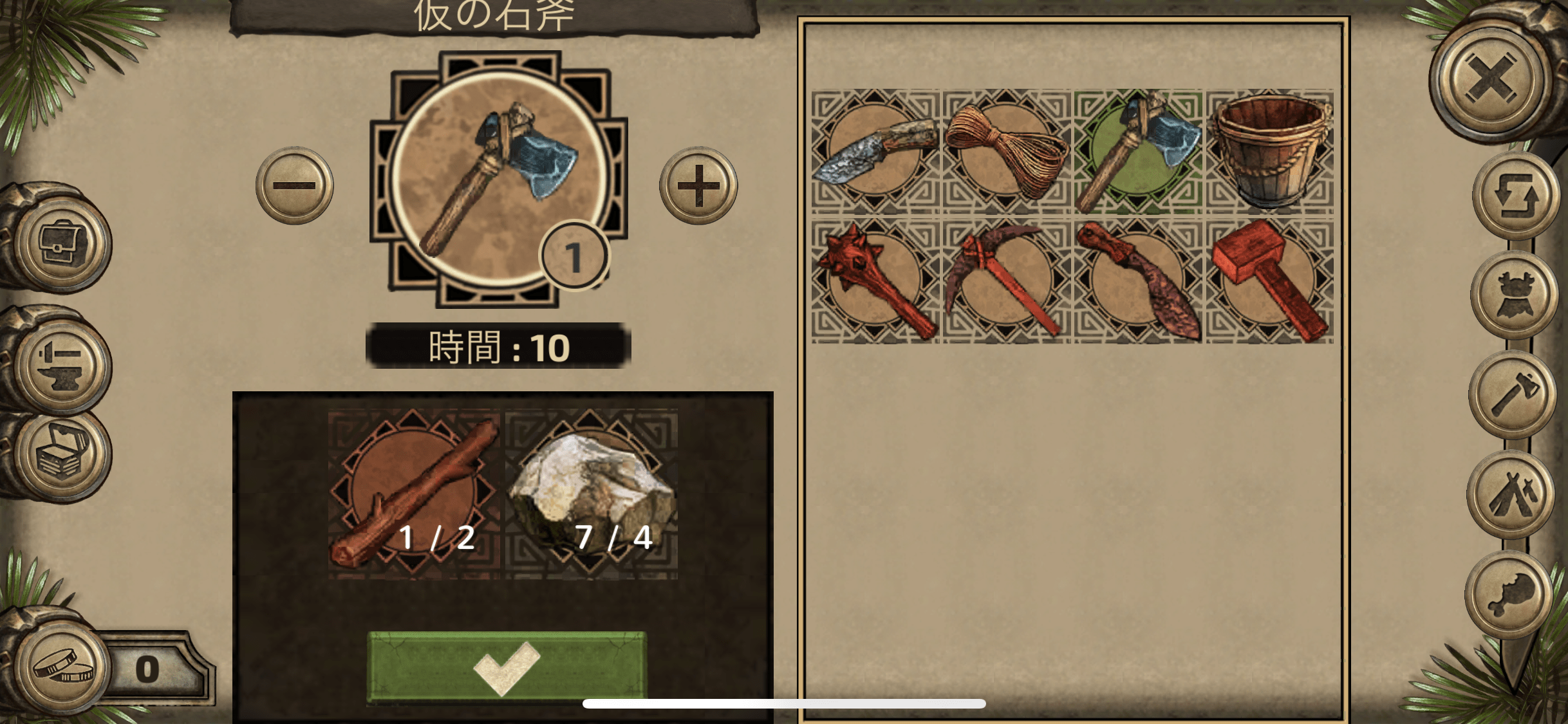一応斧でも石は削れるんだけど、石がたまったらピッケル作った方が石採集の効率は多分良い。(日本語訳妙なとこもちょいちょいある)