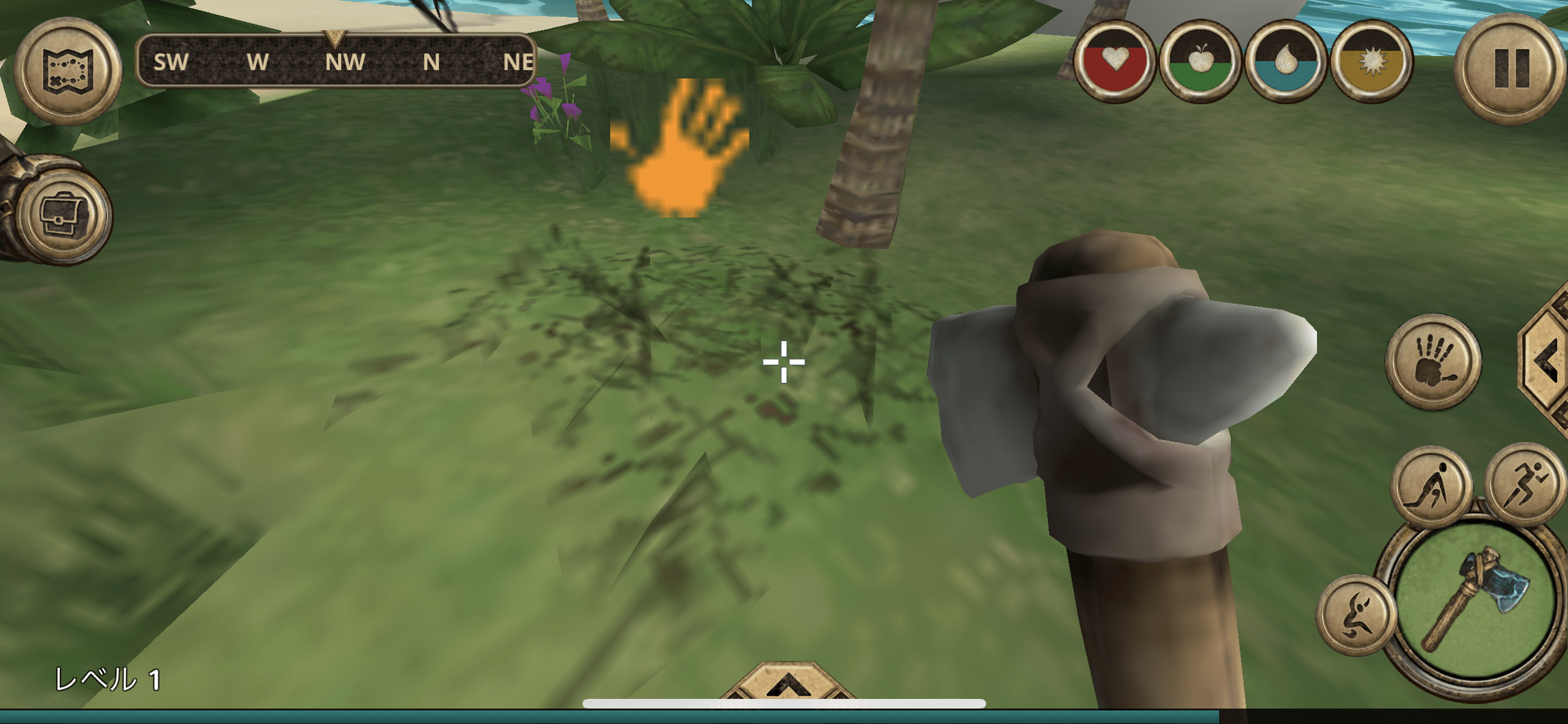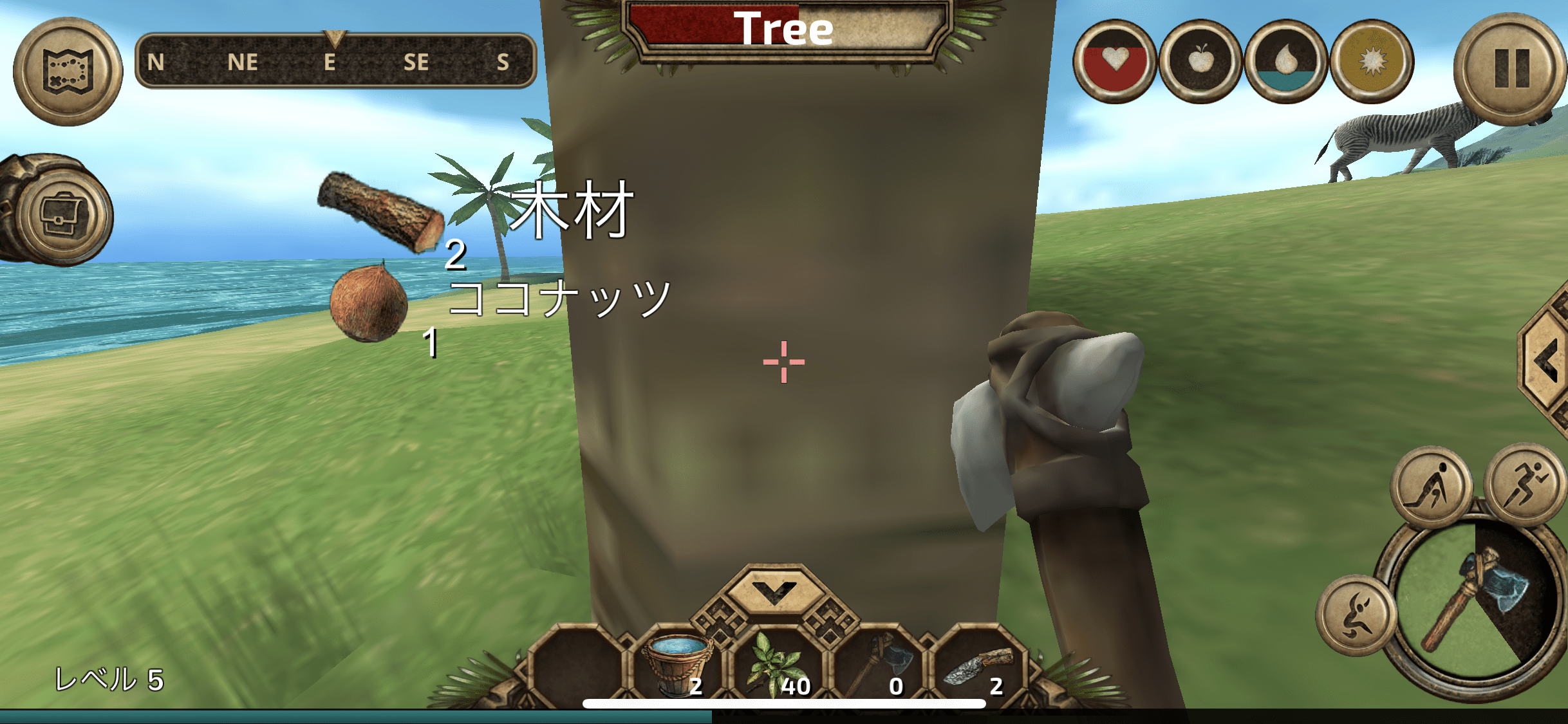 斧は木材を切り出すのに向いている。たまにココナッツとかも落ちてくる。