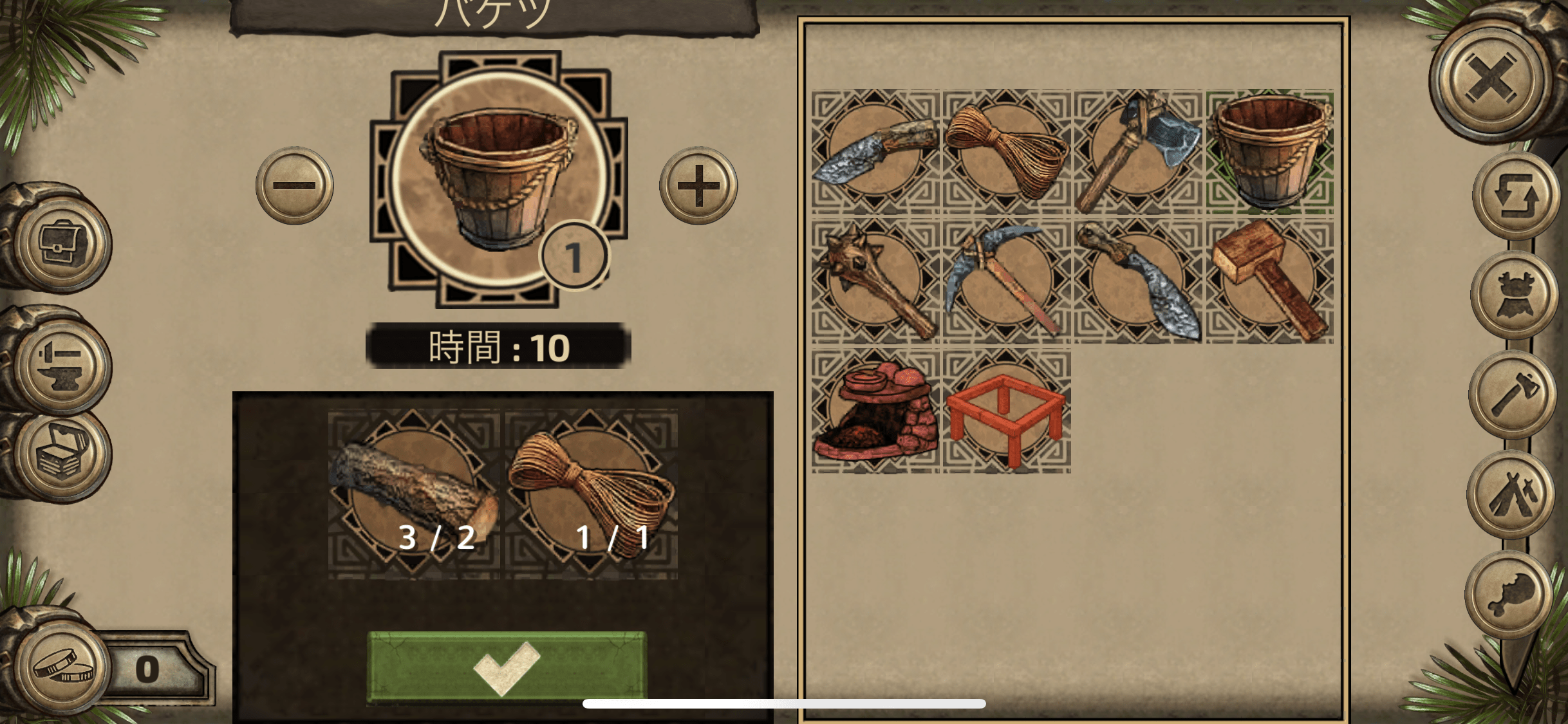 初期宝箱にロープ1しかないから、他のに使う前にバケツを作れ!