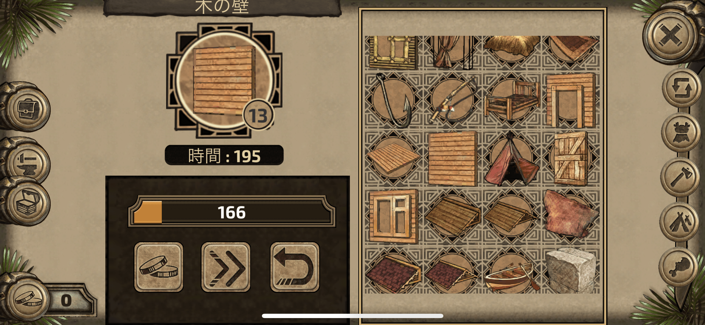 昼間狩りや採集をして、夜は拠点でひたすら生産というのをやっていて、一個ずつ作るの結構時間かかるしめんどくさいと思ってたら、なんだ、まとめた個数指定してやれば一気にできるのね。(その分時間伸びる)
