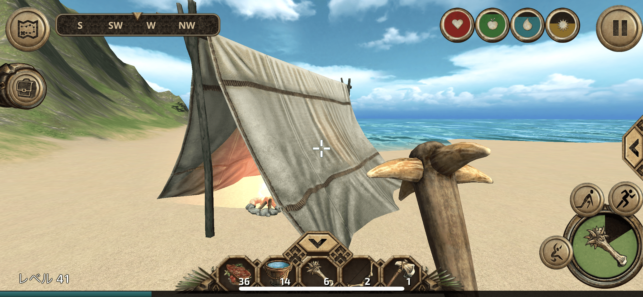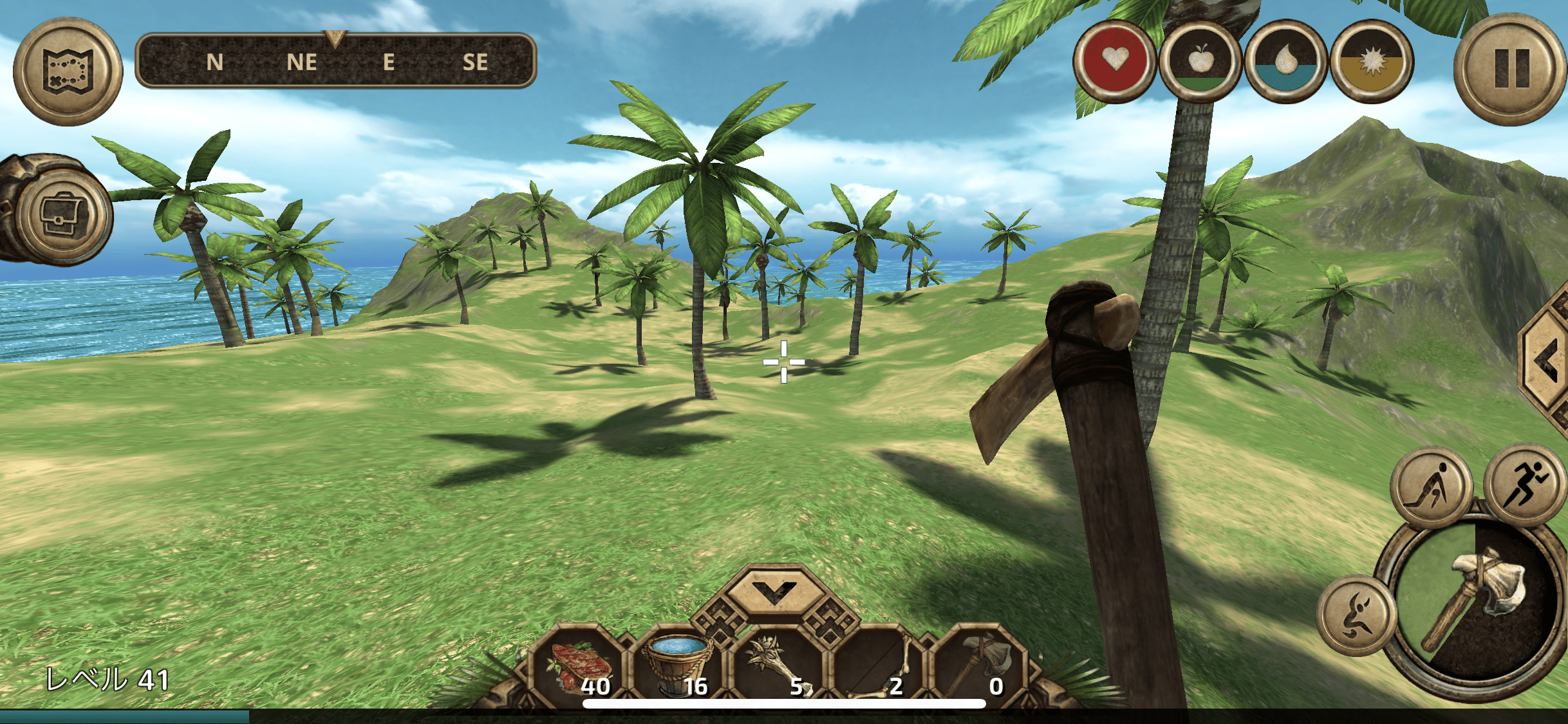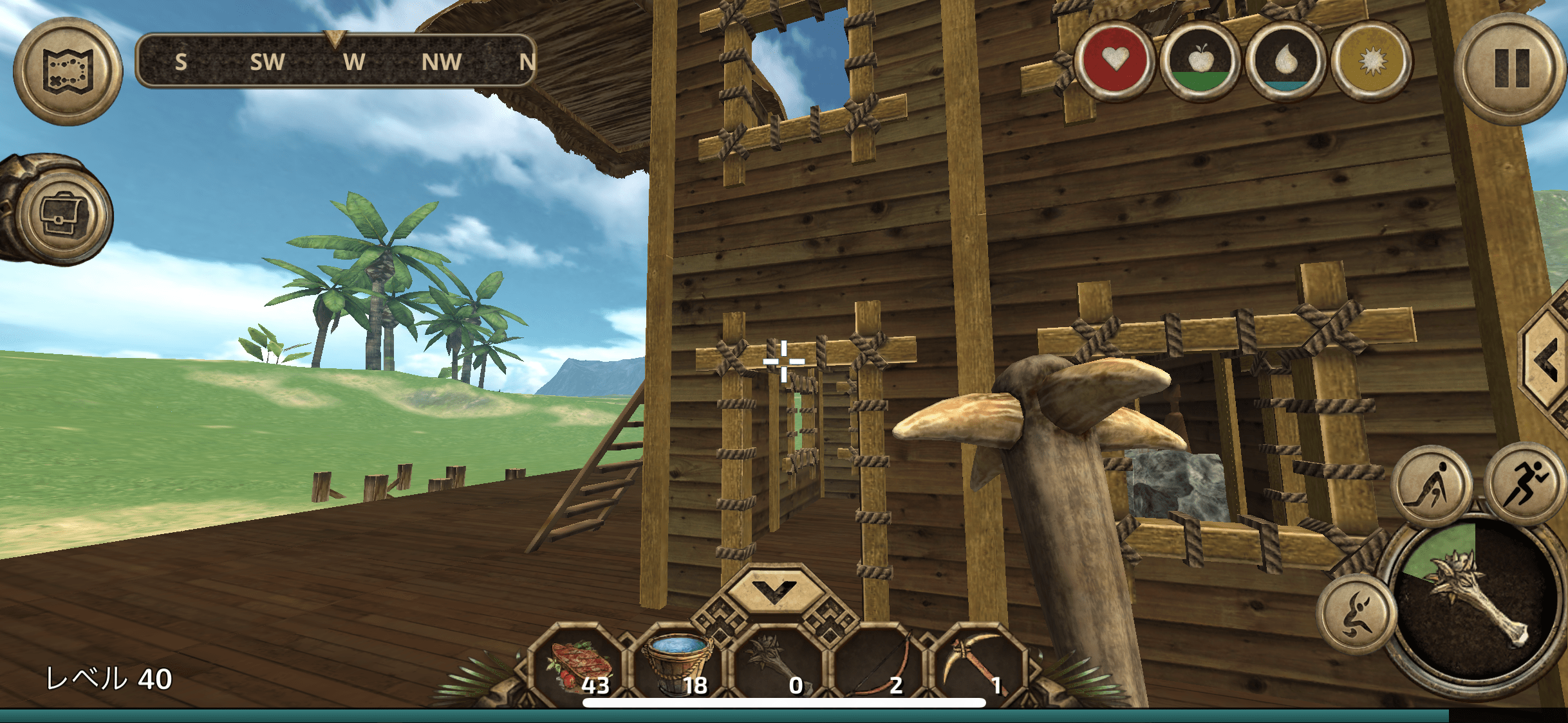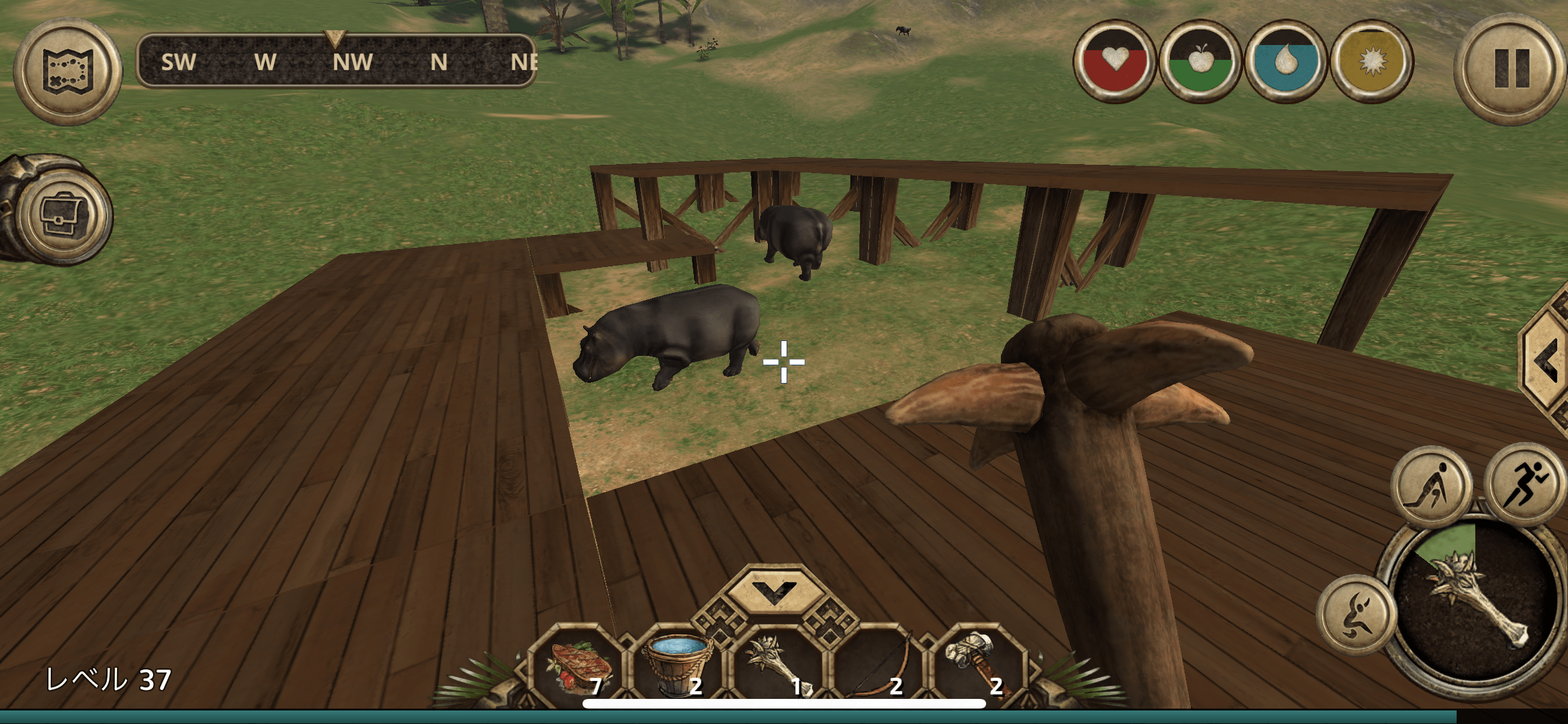島内を一周回ってきて、結局あのライオンが次々ポップするところが狩猟にも採集にも一番良いポイントだとわかり、そこで拠点を拡張してみた。