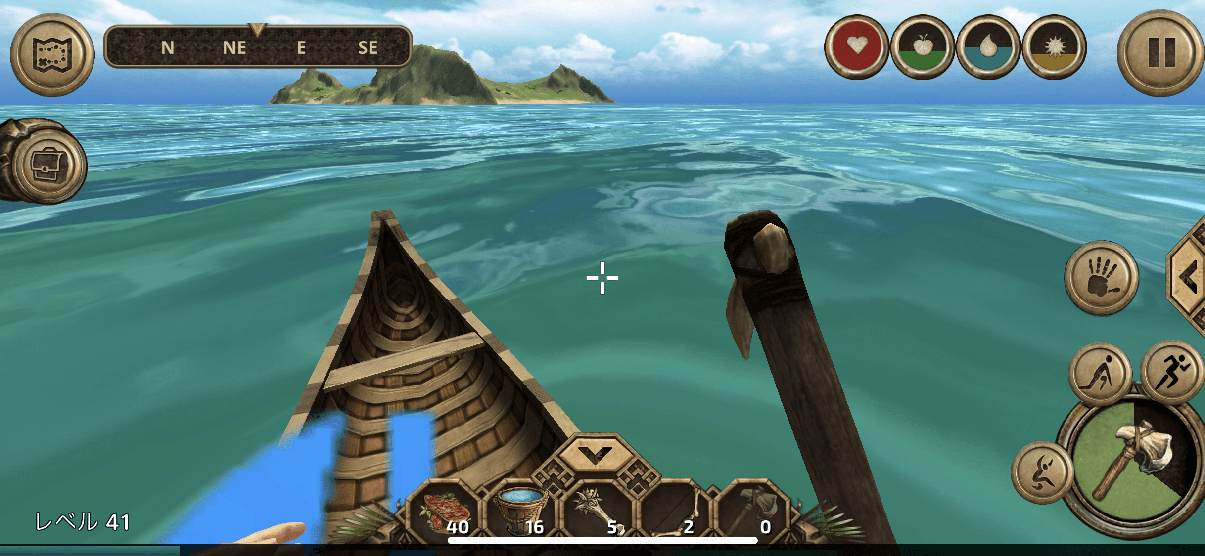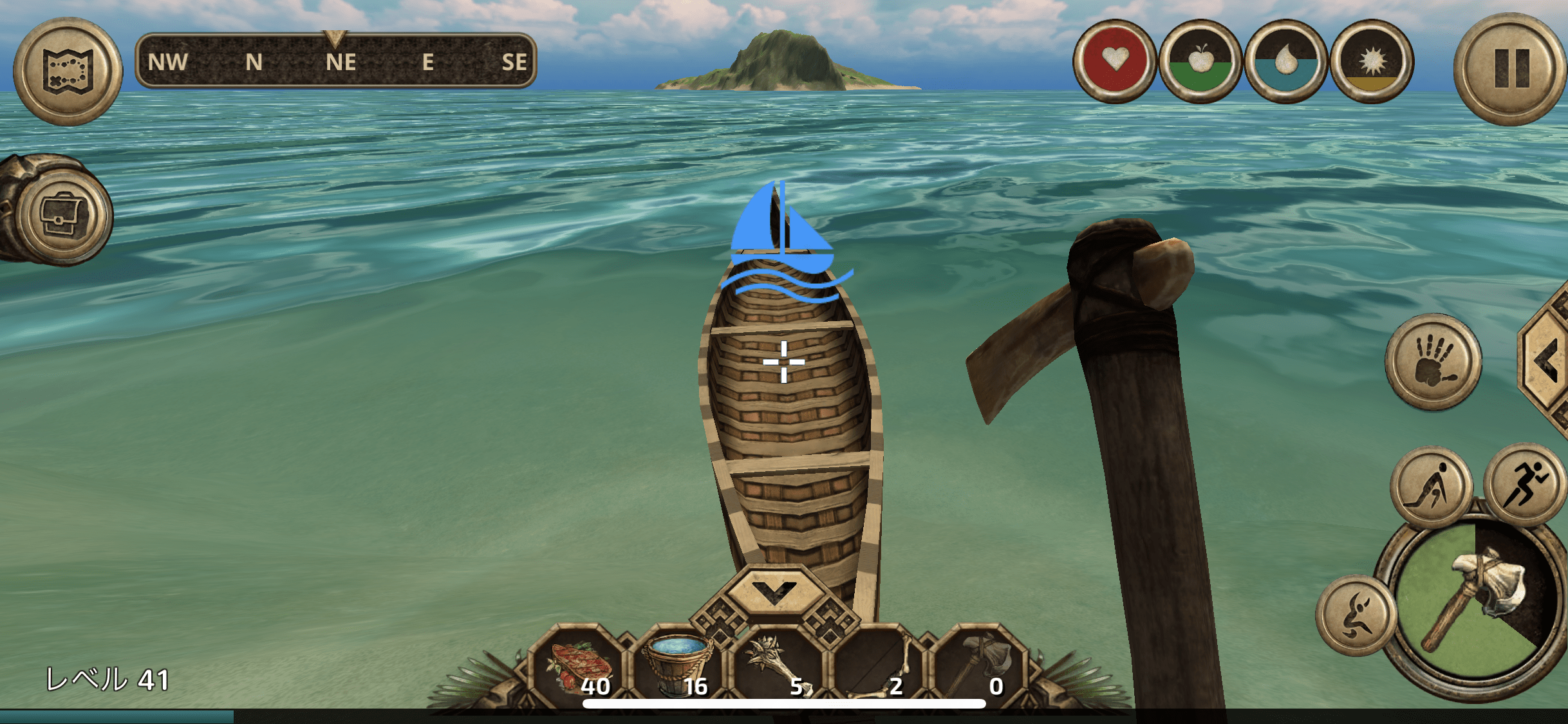 小舟を一応何艘か作って浜辺に設置したら、ヨットマークみたいのが出るので手で採集するマークで乗れた。