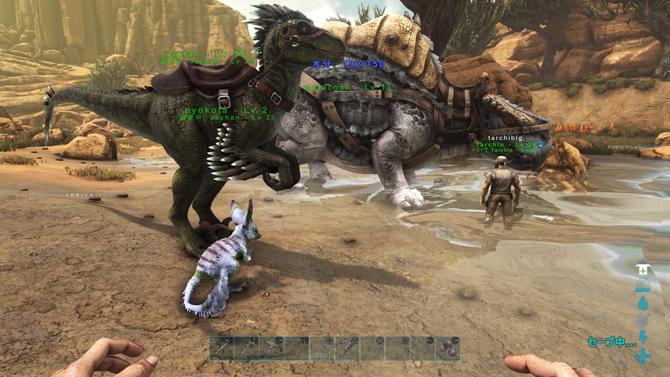 しかしここが結構な危険地帯で、ティラノはじめ肉食系に襲われまくり拠点を作るまでに何度死んだことか。。。