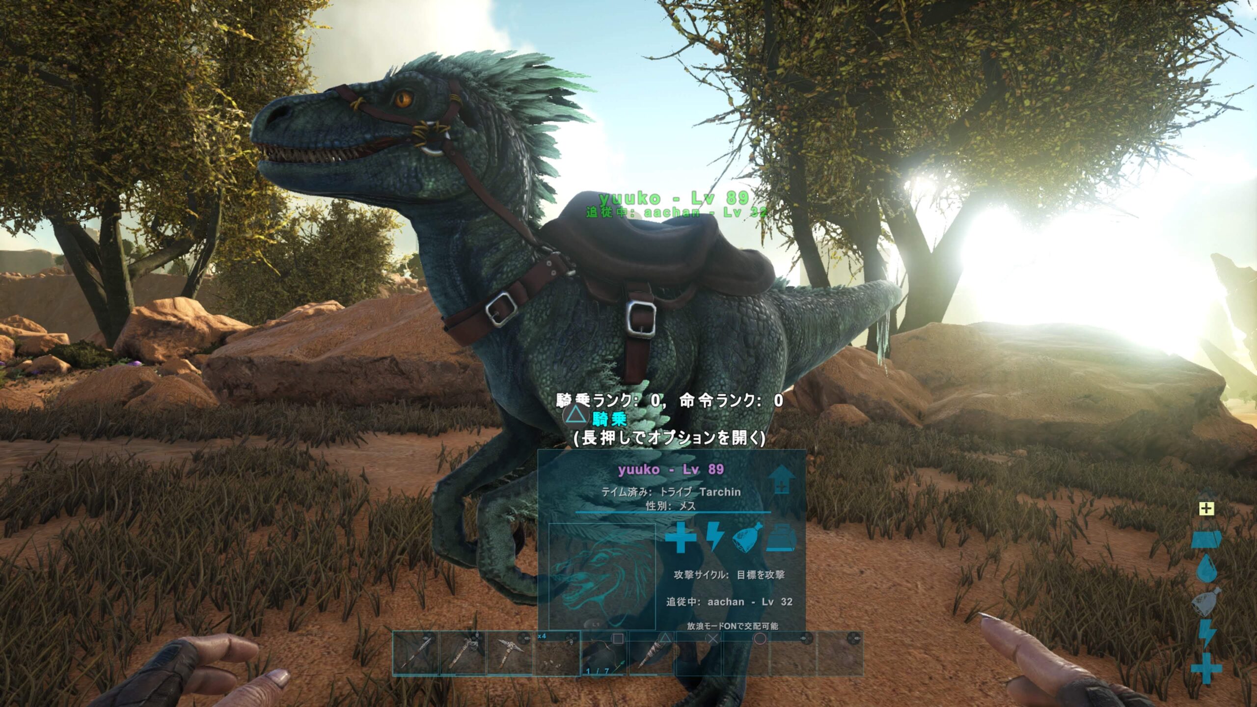 地道な生活で黙々とレベルをあげ、ボーラと麻酔矢が作れるようになったらまず定番のユタラプトルをゲット。