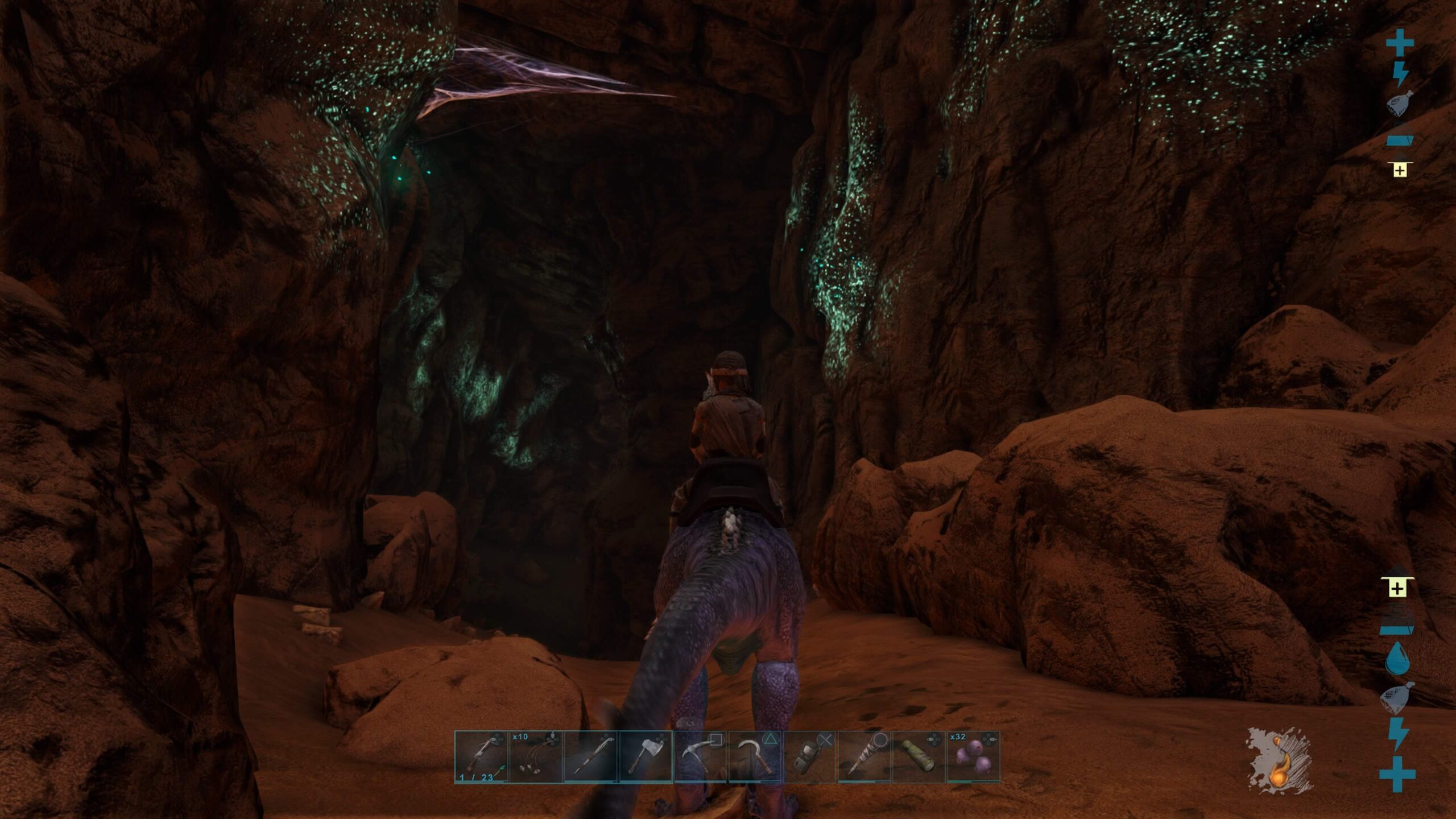 洞窟も発見した。ユタちゃんだと入り口の門もすいすい入れたが、大型だと入れない。