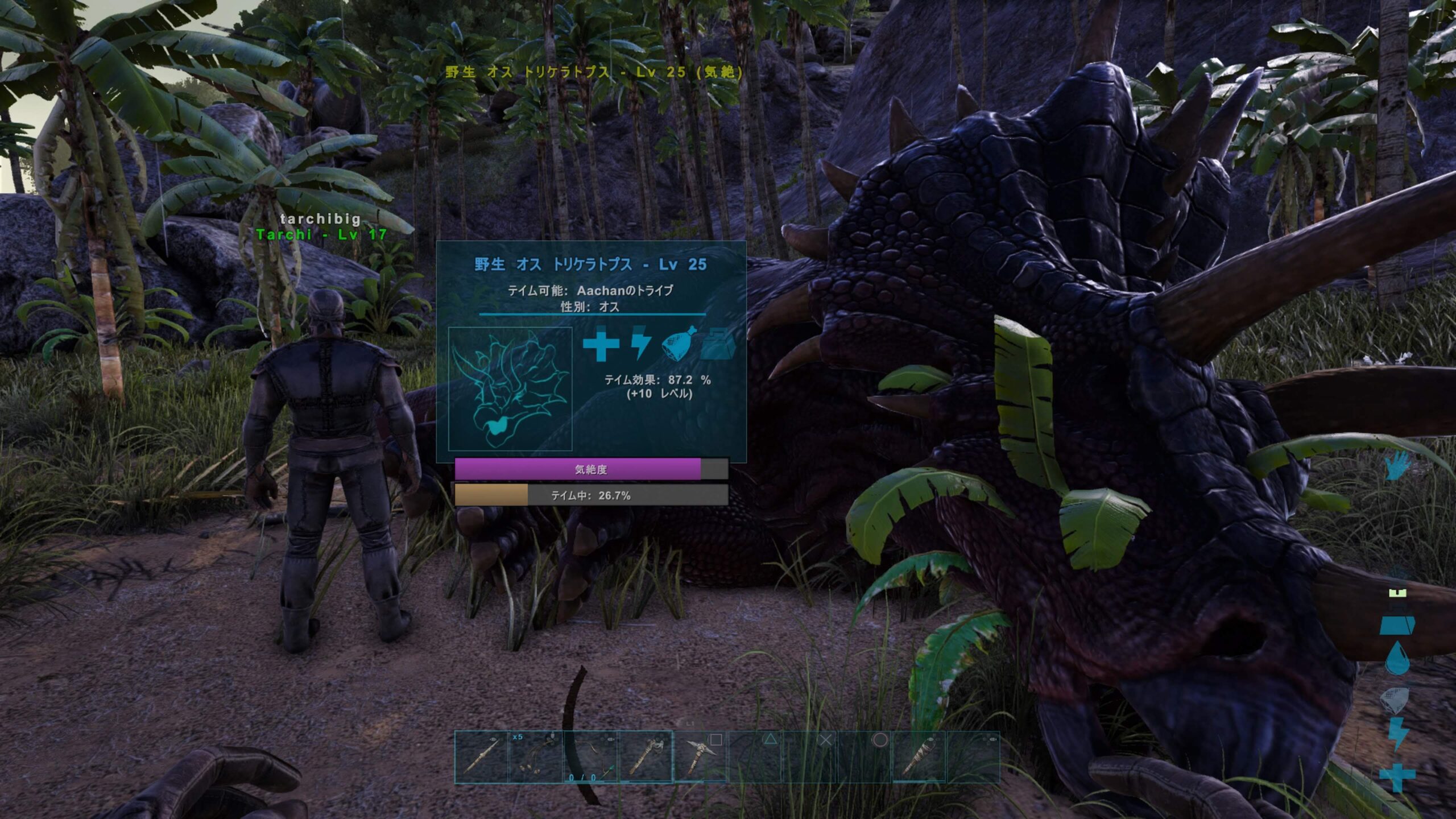 最初の荷物持ち兼採集便利要因のトリケラちゃんゲット。