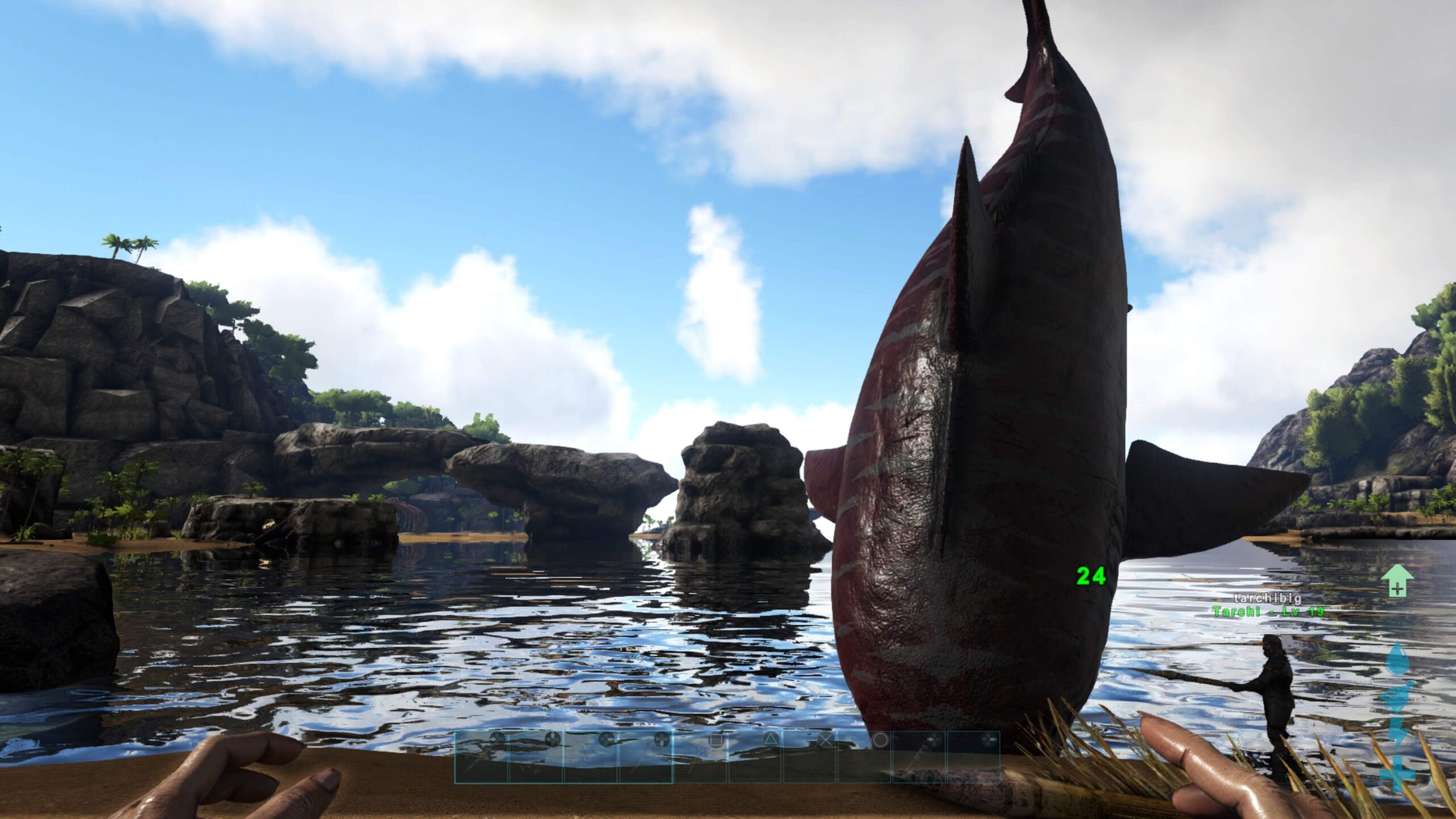 回収に向かおうと海に踏み込んだら浅瀬にメガトロドンが突撃してきて逆立ち状態ではまった。