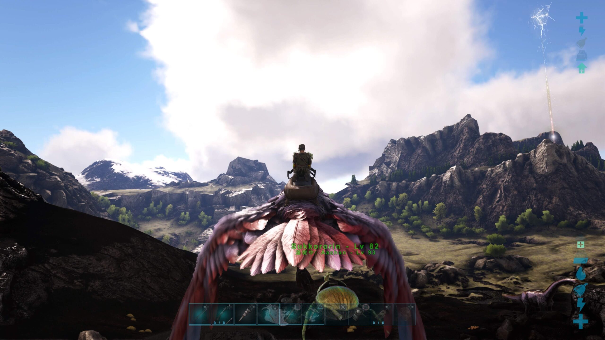 間違って女王バチをKILLしないようアルゲンを無抵抗にして巣をぶっ壊し、ギリースーツを着て防虫剤を撒いて、右端スロットにレアフラワーをセットしてストーカーしてたんだが、いつまでたっても手渡しテイムの三角ボタンが出現しない。