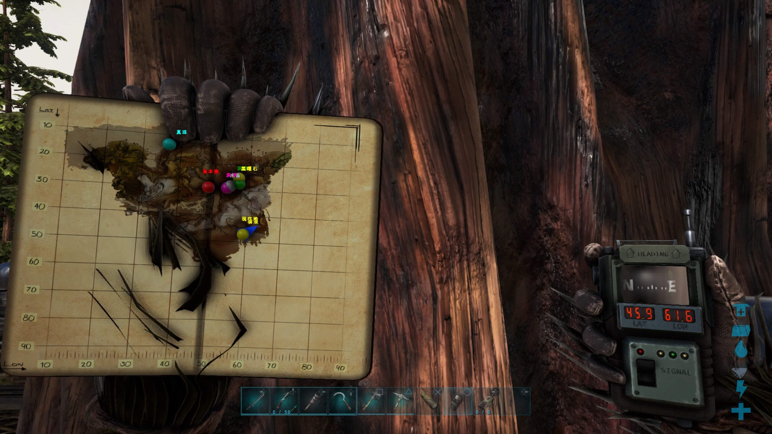 まず先に樹液の蛇口をレッドウッド(切れない木)の一本にブスっと差し込み位置を確認。