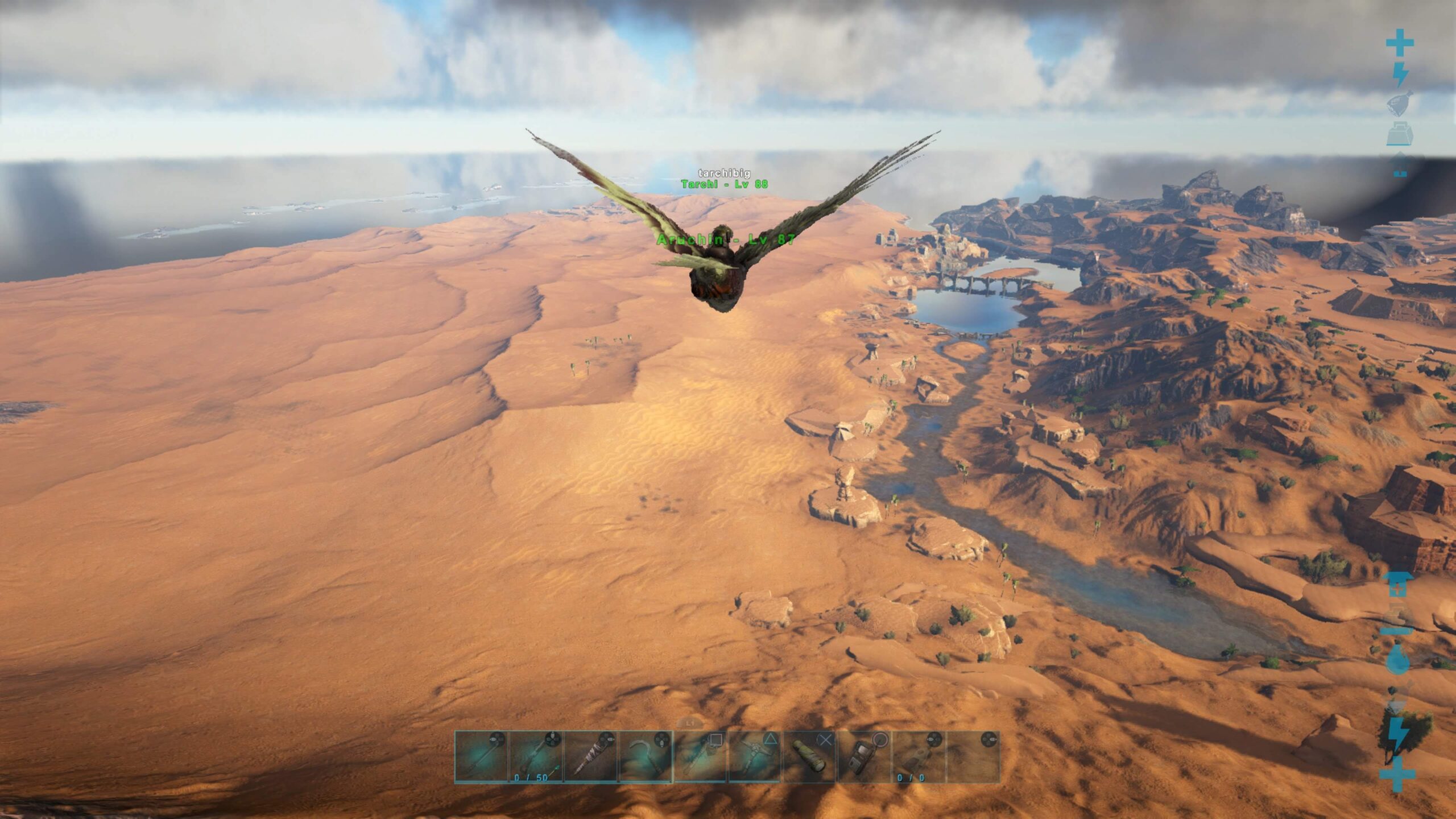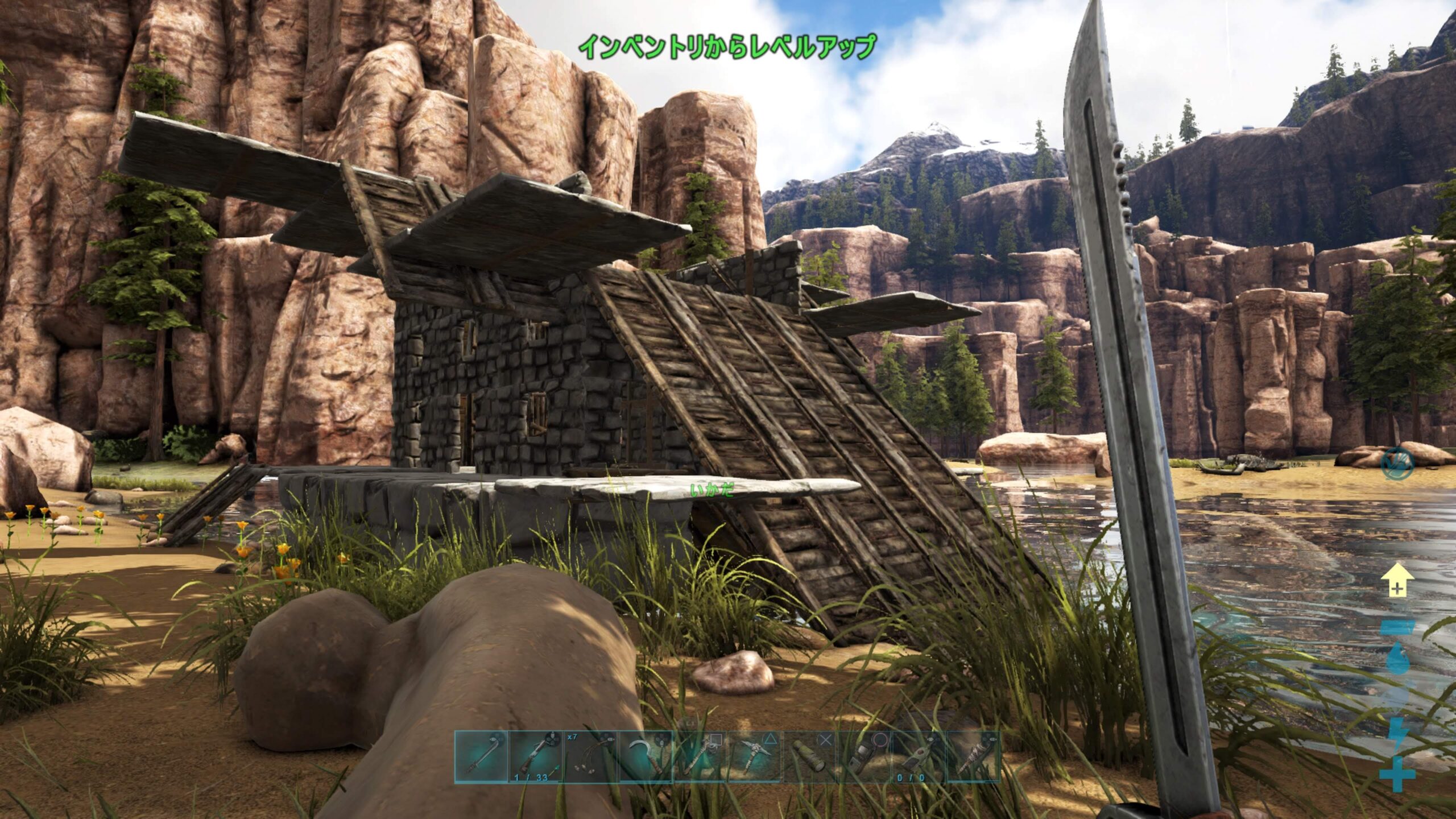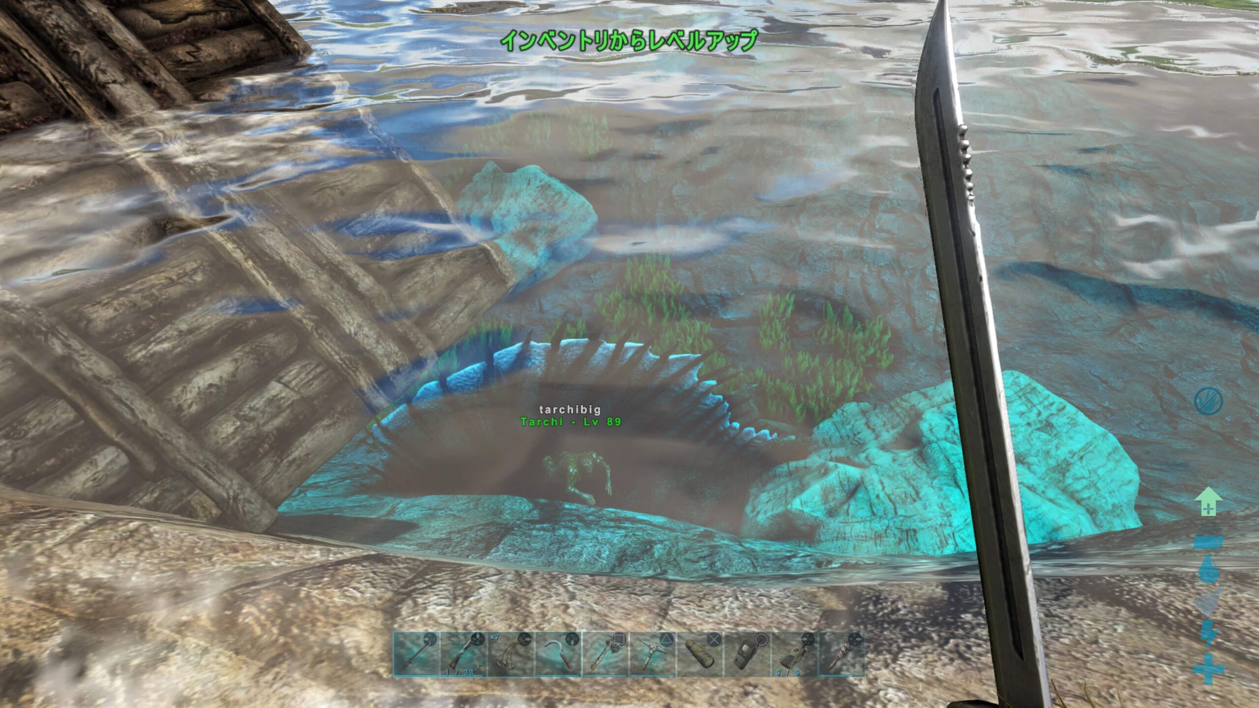 ケーキ作りはいったんおいて、海より近そうな峡谷に真珠ポイントがあるらしいということで先日でかけたが、ピラニアの数が多すぎる上にスピノが大量にいるのでおちおち潜れない。
