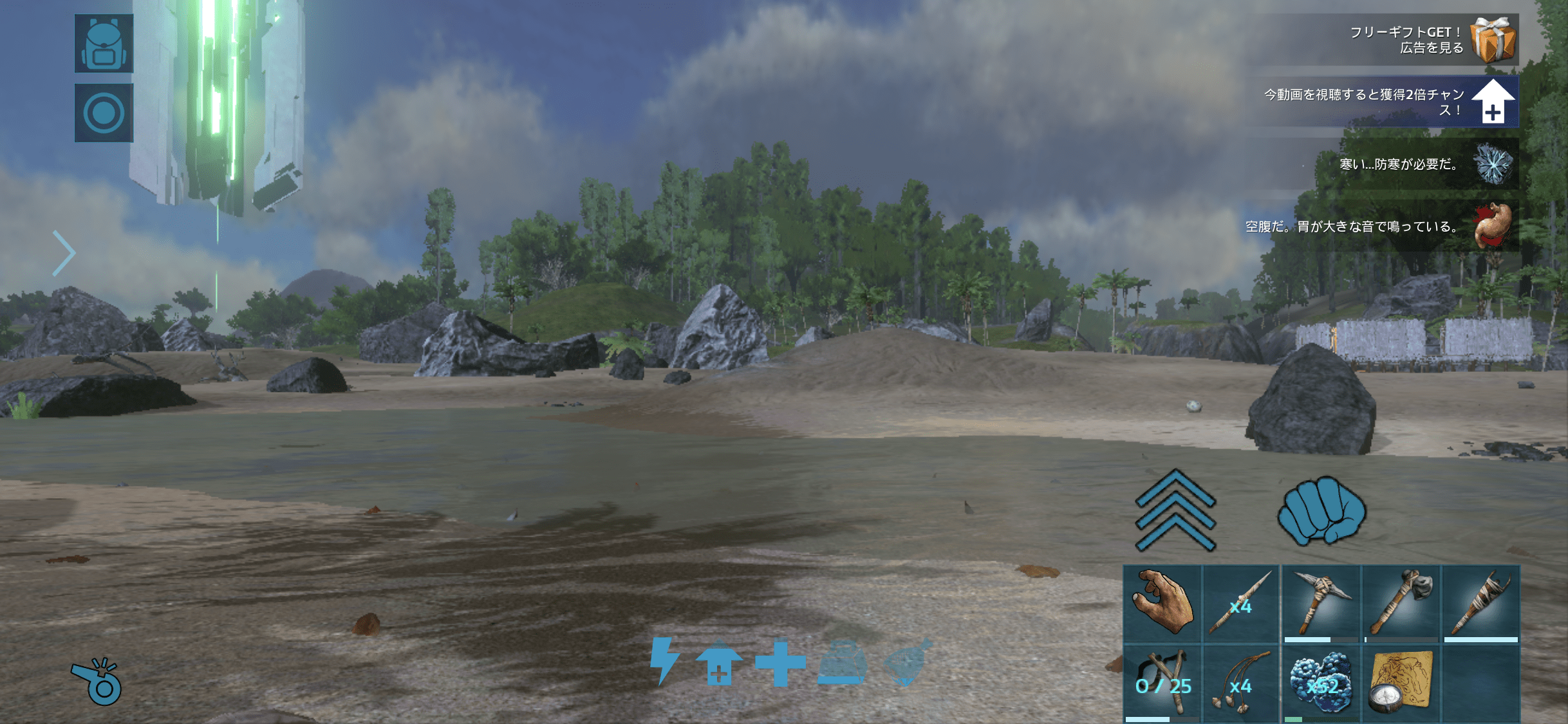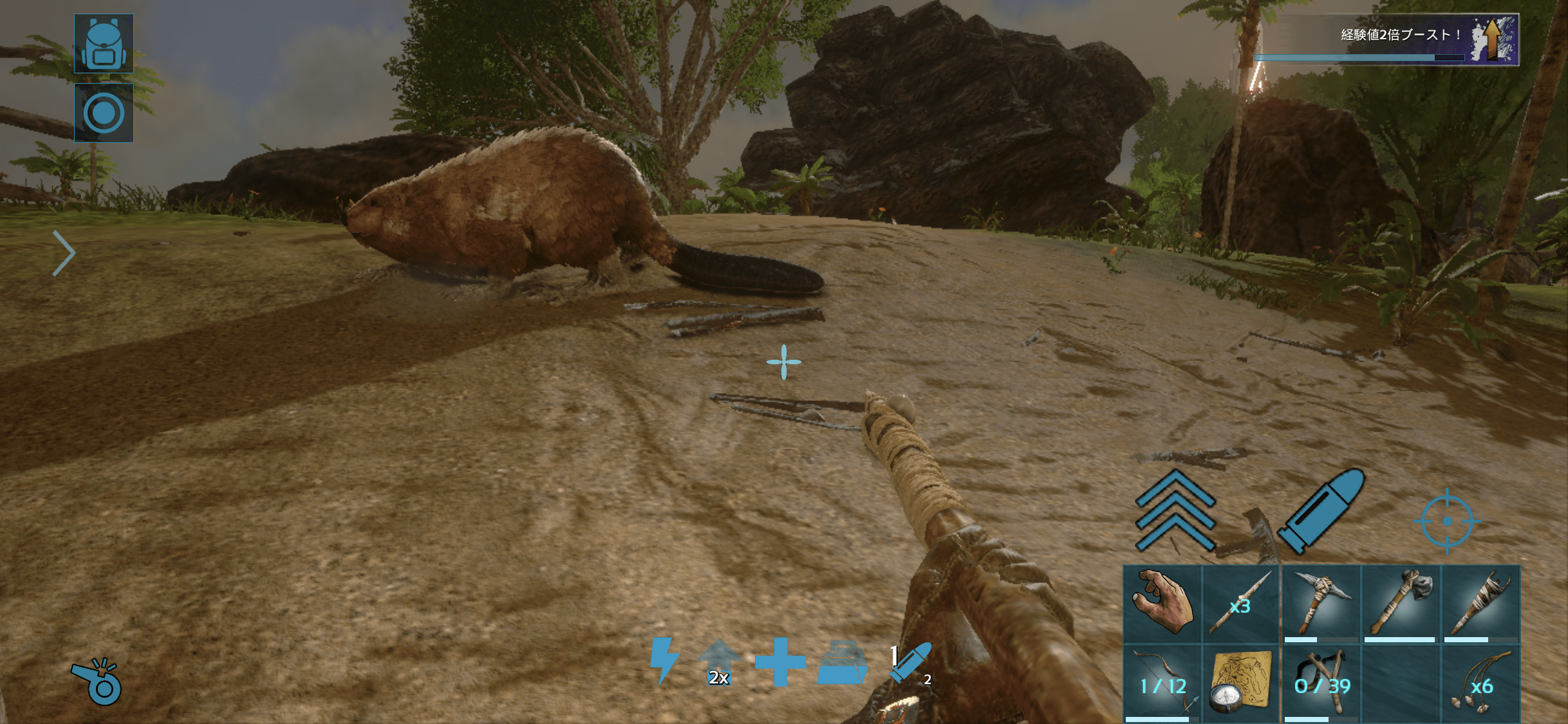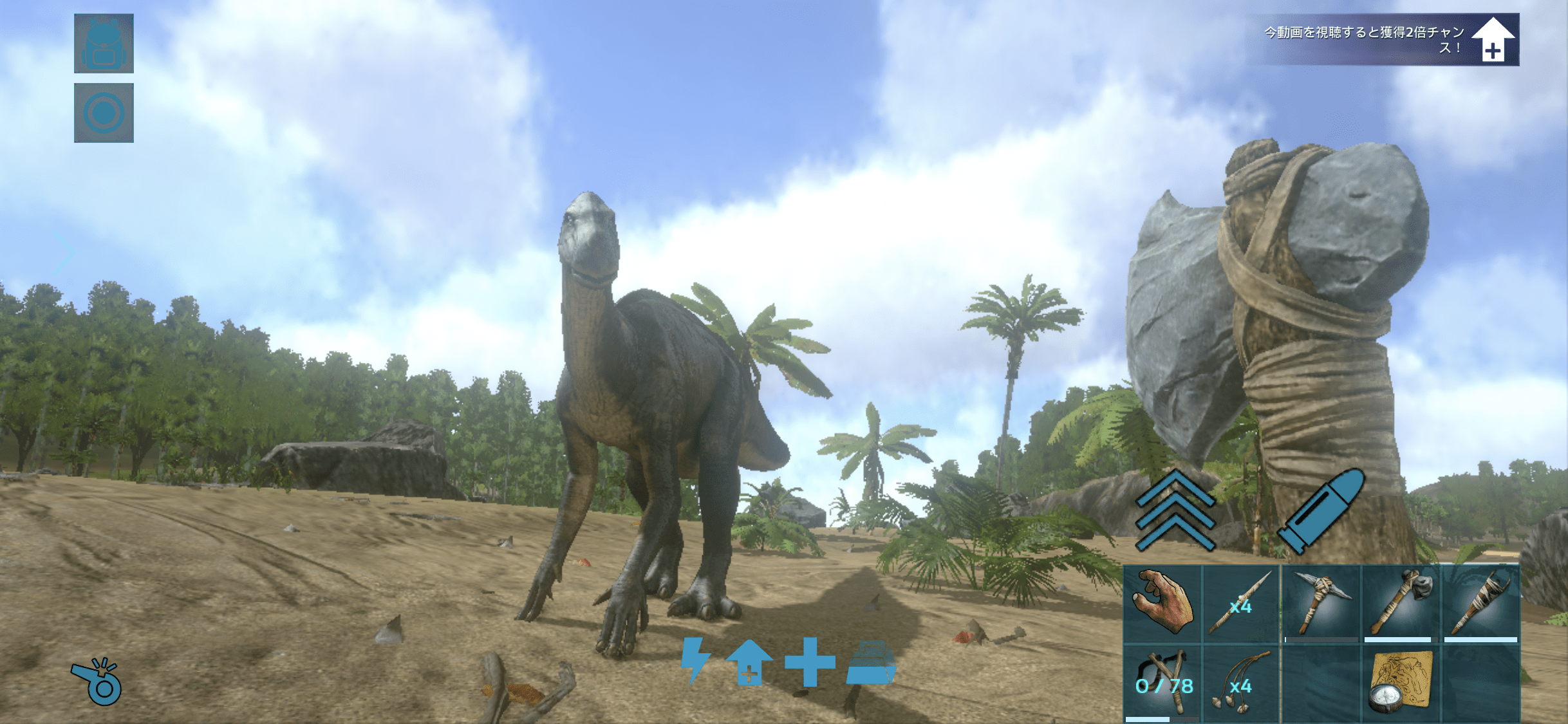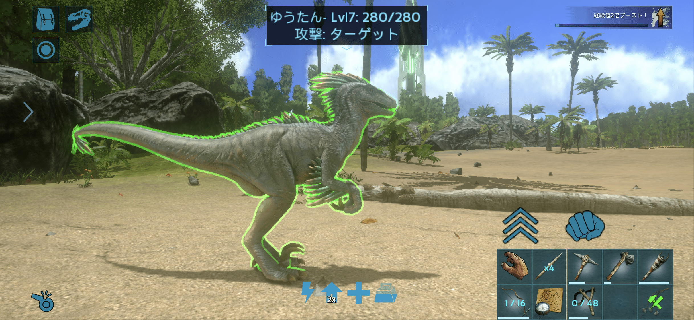 建築と採集で地道にレベル上げをはかりつつ、テイムにちょうど良い恐竜を探す。