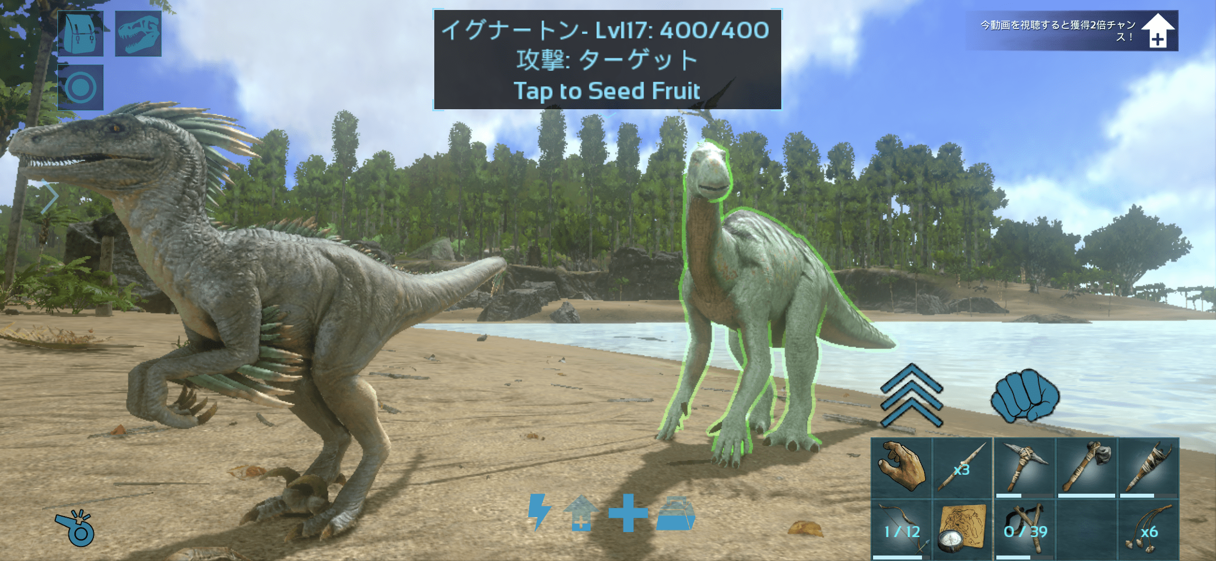 良い感じのレベルのイグアノを見つけたのでテイムしたが、翌日浜辺を散策中にカルノに襲われて撃沈。