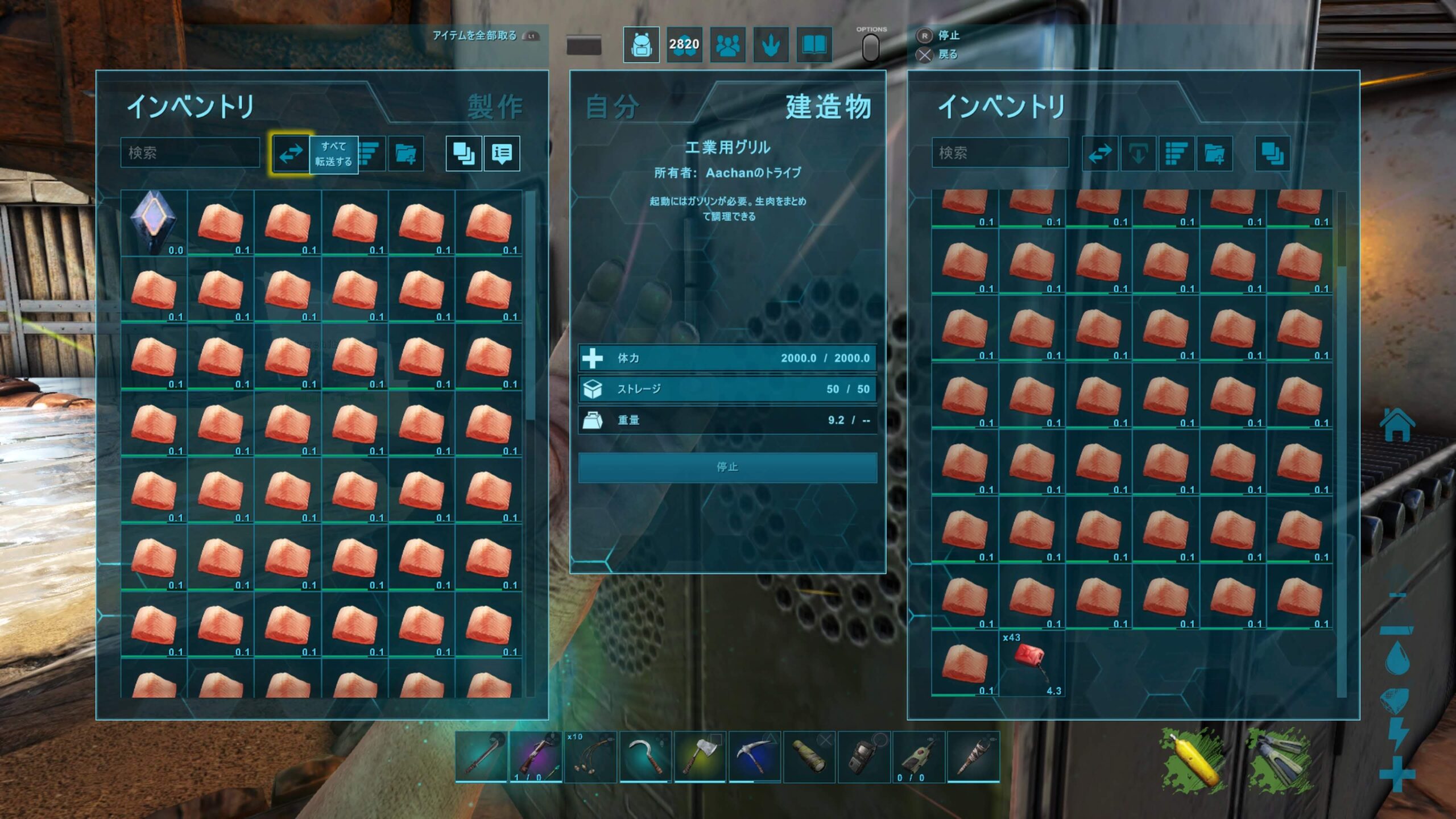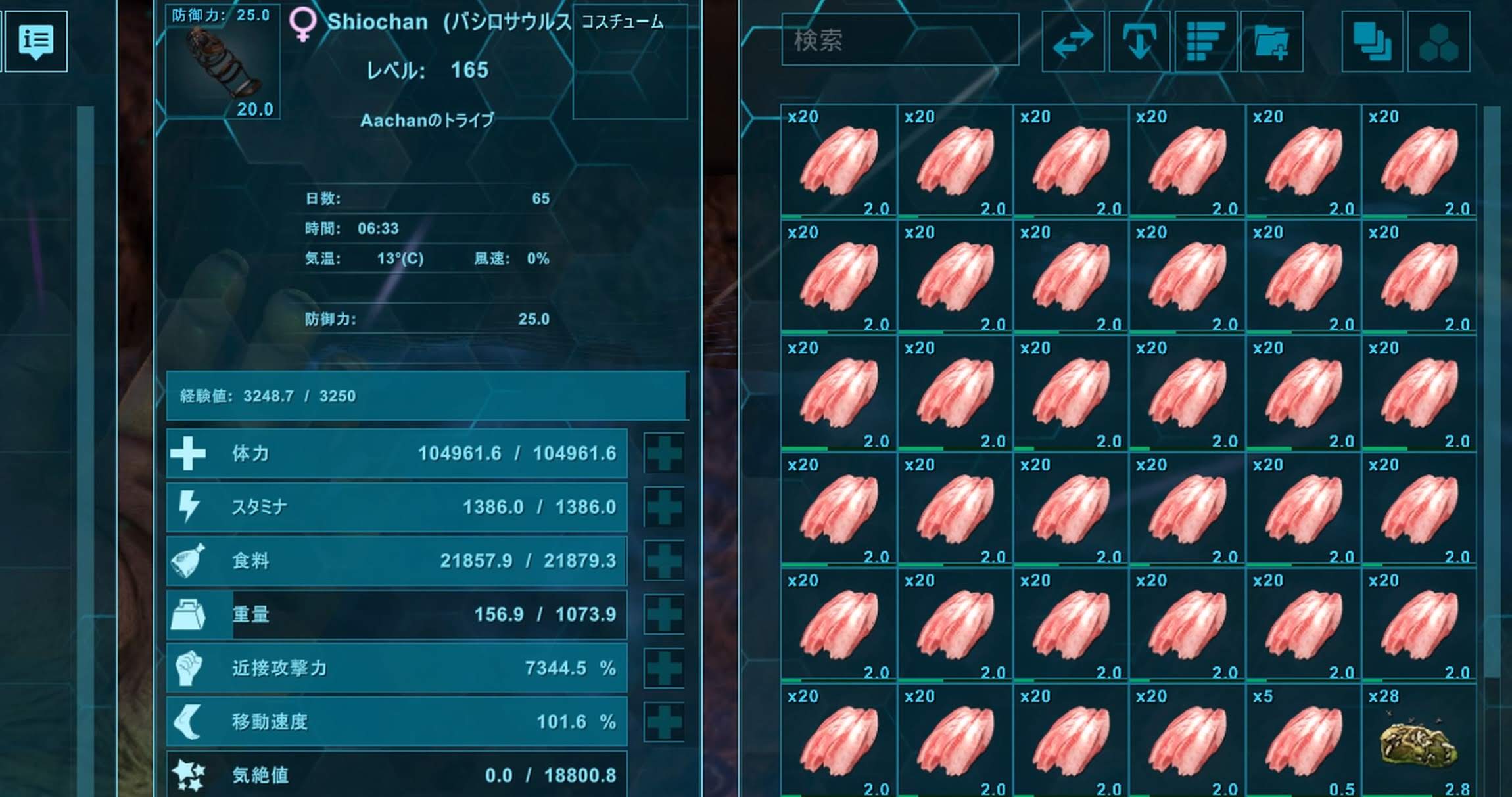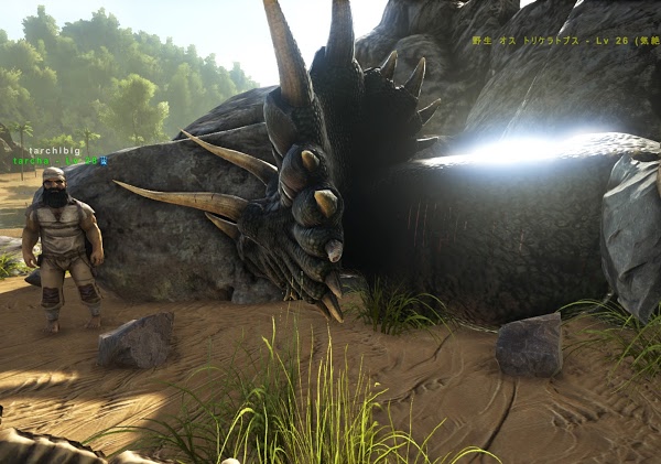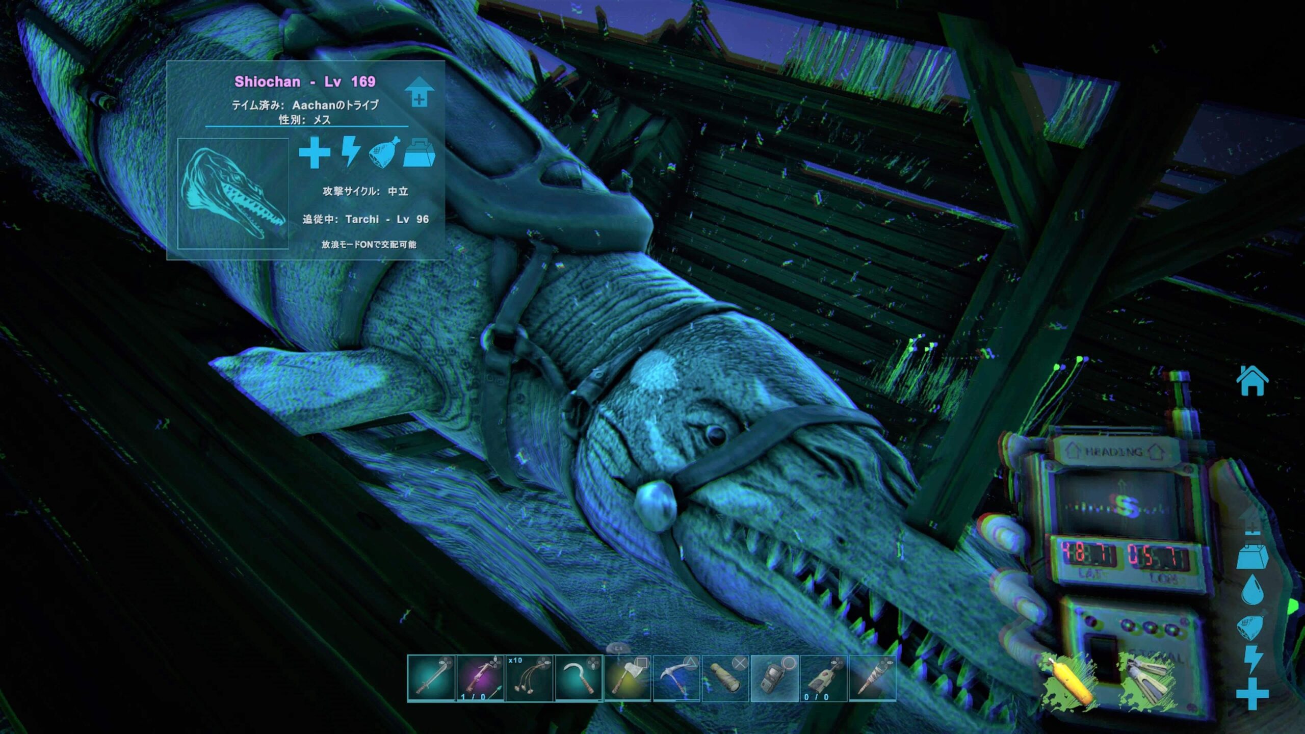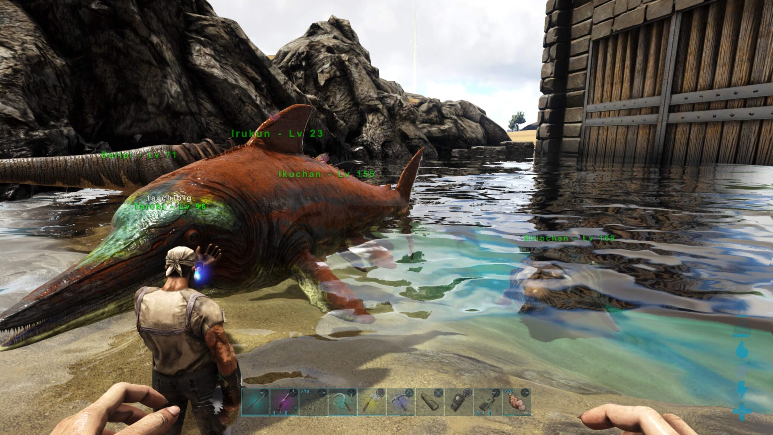 手渡しテイムでキブルがなくても霜降り肉でもいけるのですが、やっかいなのがこの周囲に張り付いてるマンタどもが手渡し開始と同時に一斉に襲い掛かってくるのです。結構痛いよ。