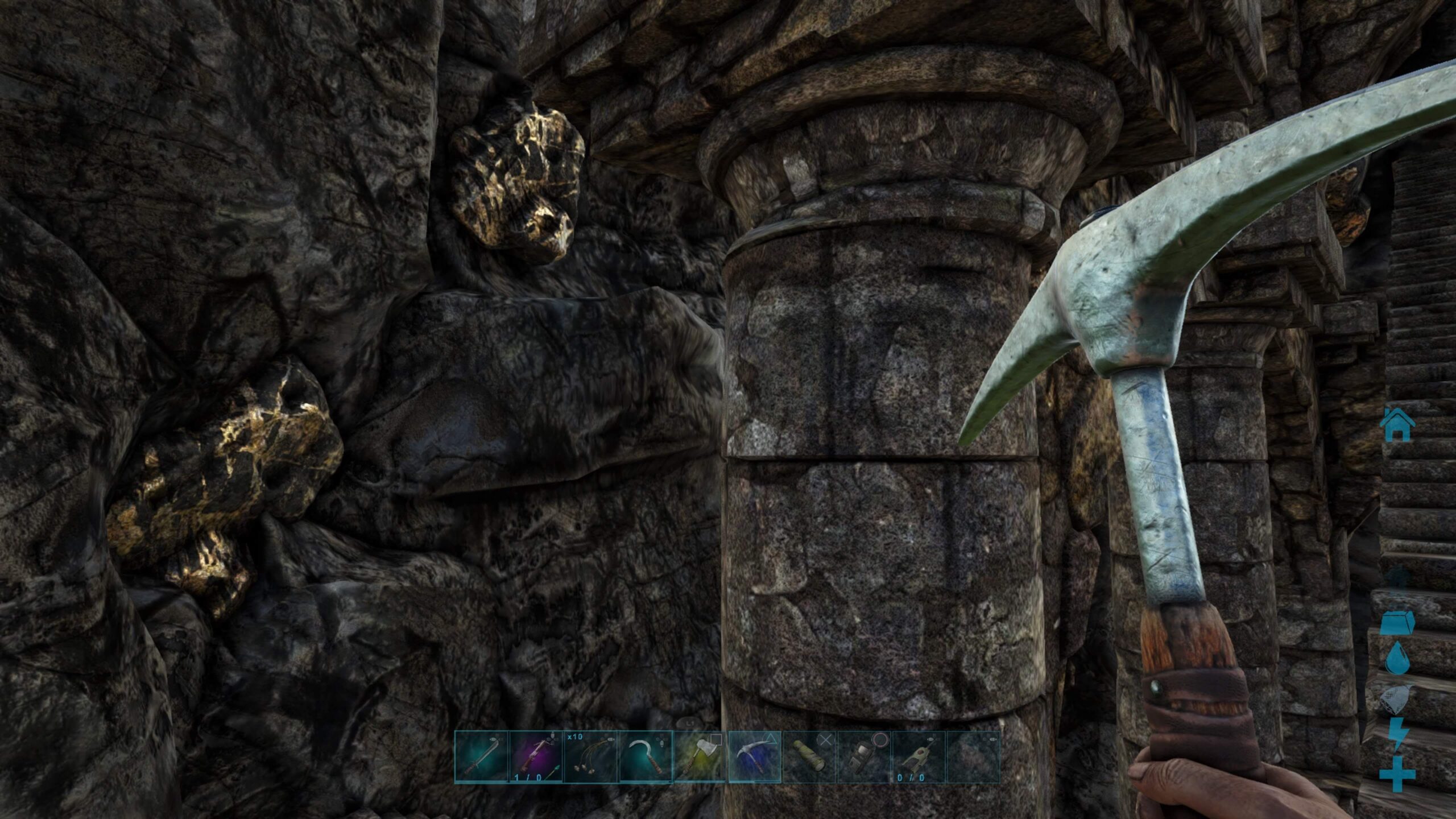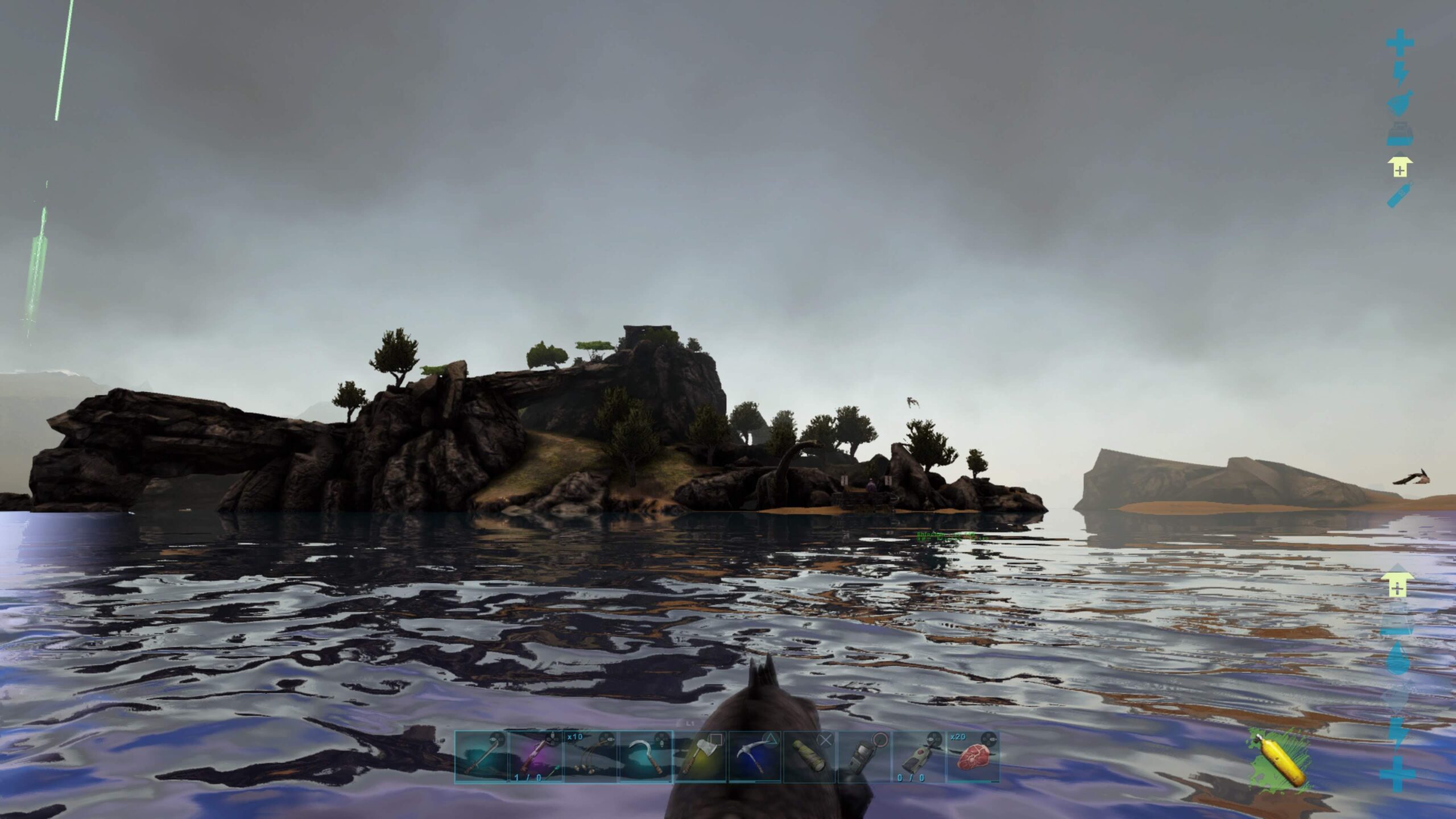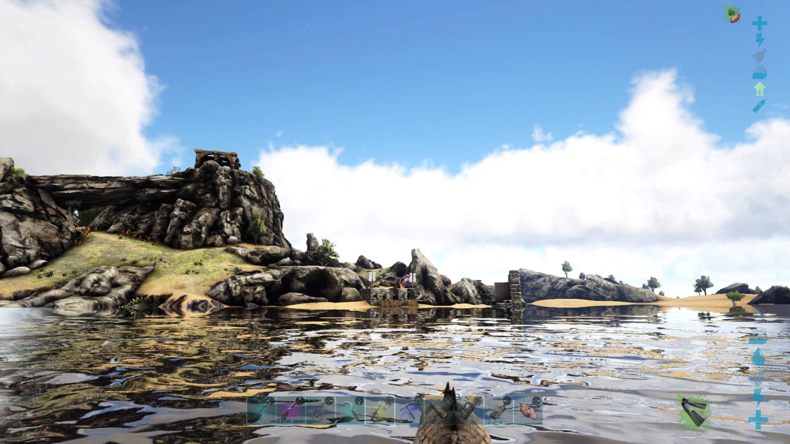 結果、樹木や岩石、繊維等もとれそうで、遺跡のような建築物が目印になり、その内部には金鉱もあるという絶好条件の島に決定。危険な肉食獣もおらず、霜降り肉も歩いてる草食の楽園。