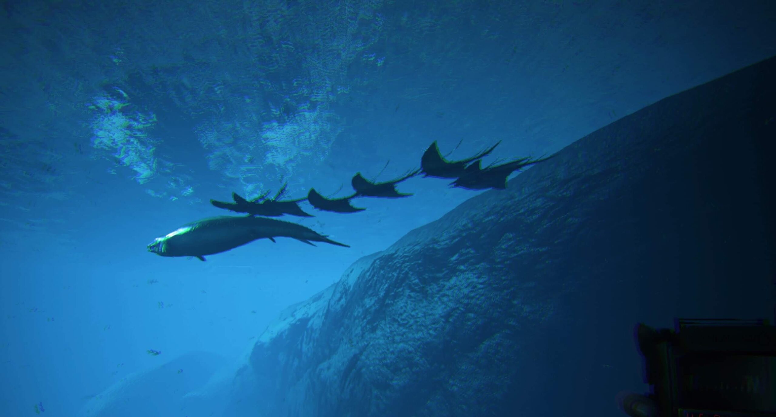 だんだん暗くなる深海目指して潜って行ったら、そこが見えたところでイカの大群に遭遇。