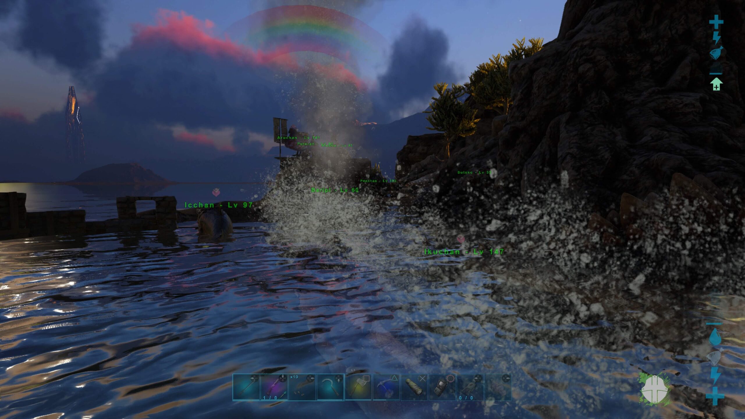 おまけに海ペット用プールに帰ってきて門を閉めた後に気づいたら、知らないイクチオの子が二匹紛れ込んでたw。レベル低いがおまけで餌付けしといた。