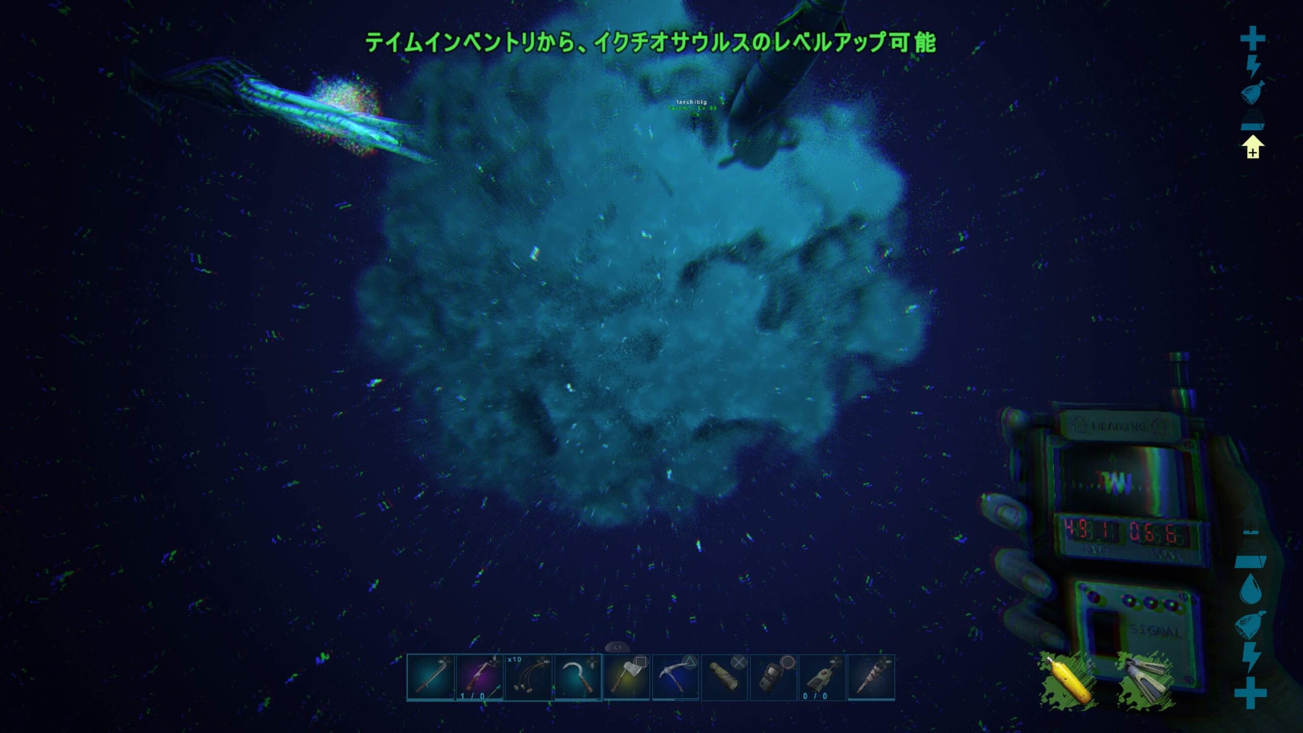 クラゲに絡まれたり、クジラが苦しみだしたので浮上する途中で後方のペットがからまれたらしくアンコウKILLの表示が。自力で見つけられなかったが、バリちゃんがジェルをしっかりお持ち帰りしてくれてた。