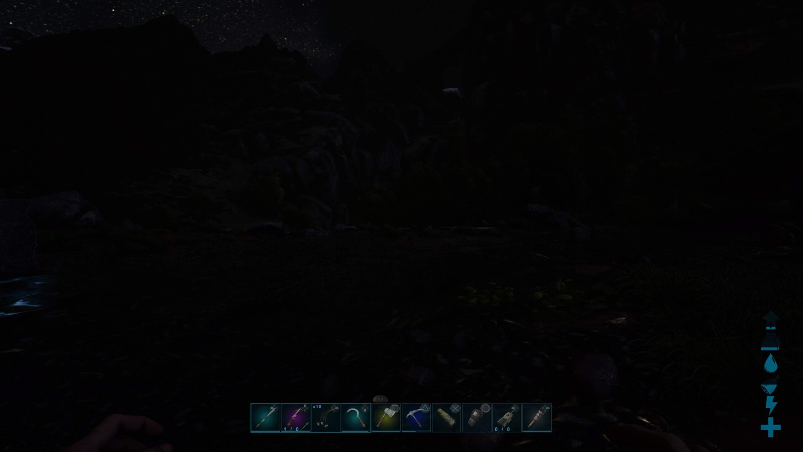 夜見渡すとこんな真っ暗で何もみえない状況だが、頭に装着すると。。。