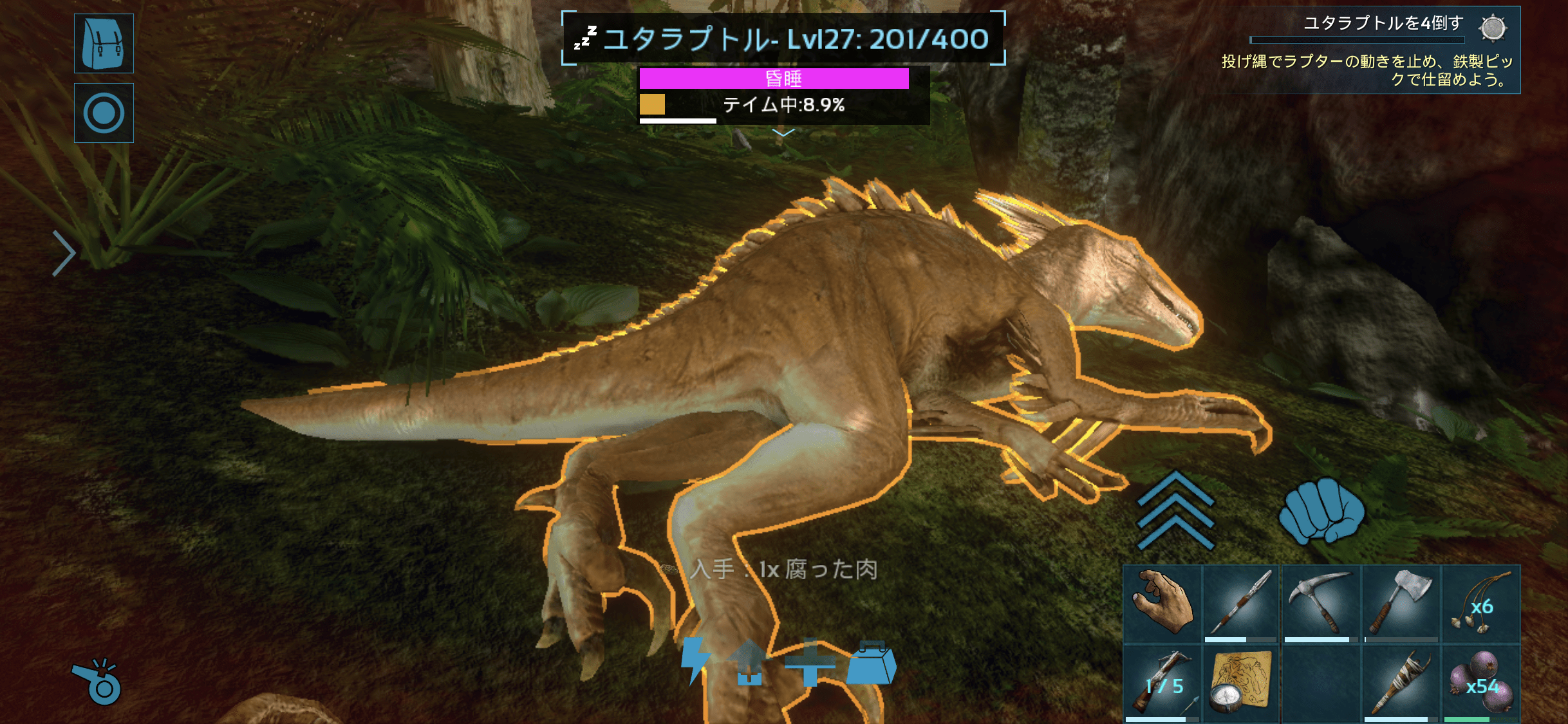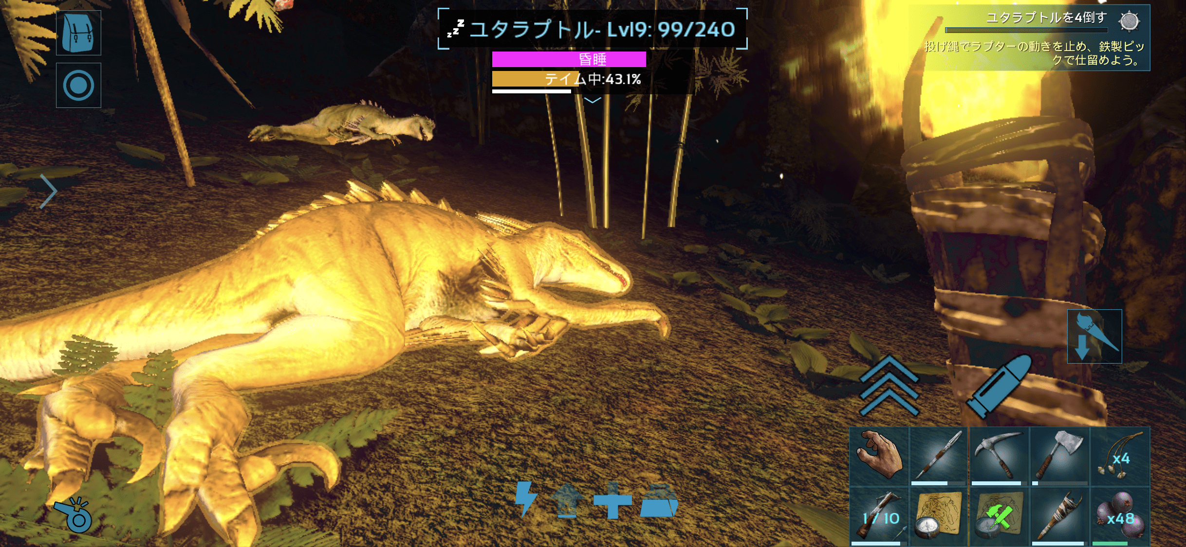 また1人彷徨い、ディロフォサウルスに襲われて倒しまくって夜になる頃にユタをゲット。