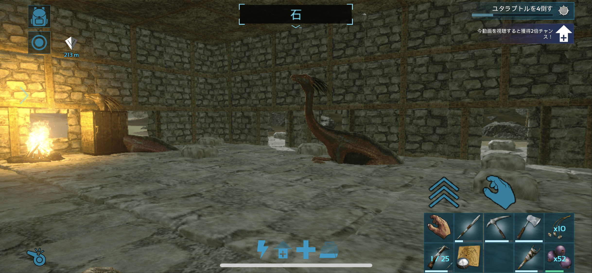 その後、ユタ2匹、イグアノドン1匹で本拠地を建設しつつだいぶ安定してきた。