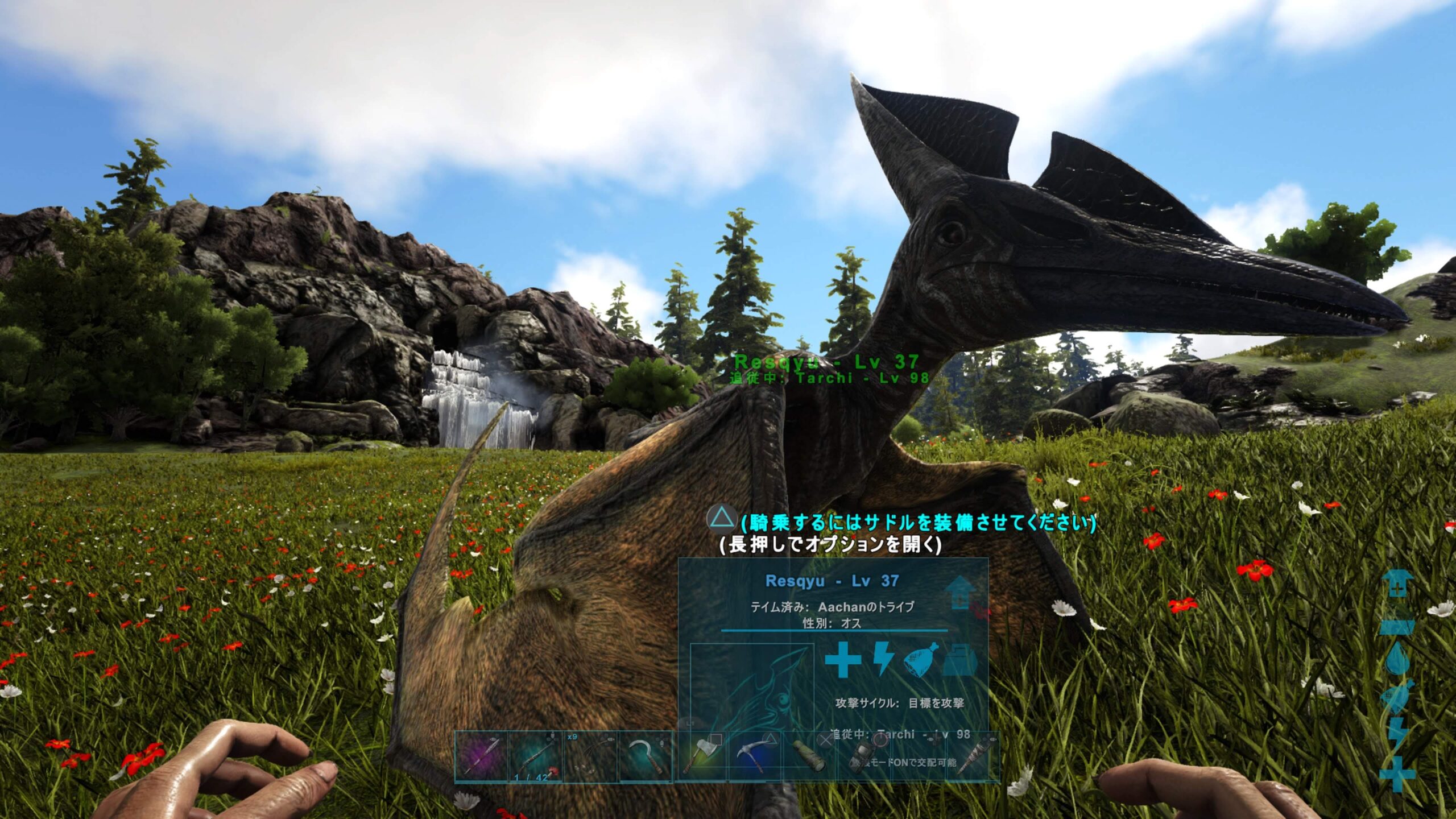 かき集めてサドルを作り、プテラノで現場へ飛んで、アルゲン2匹を空中で追従させてなんとか降ろすことができました。