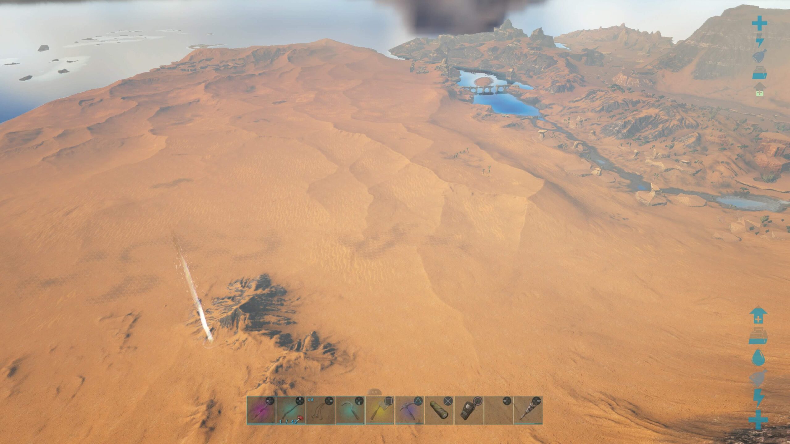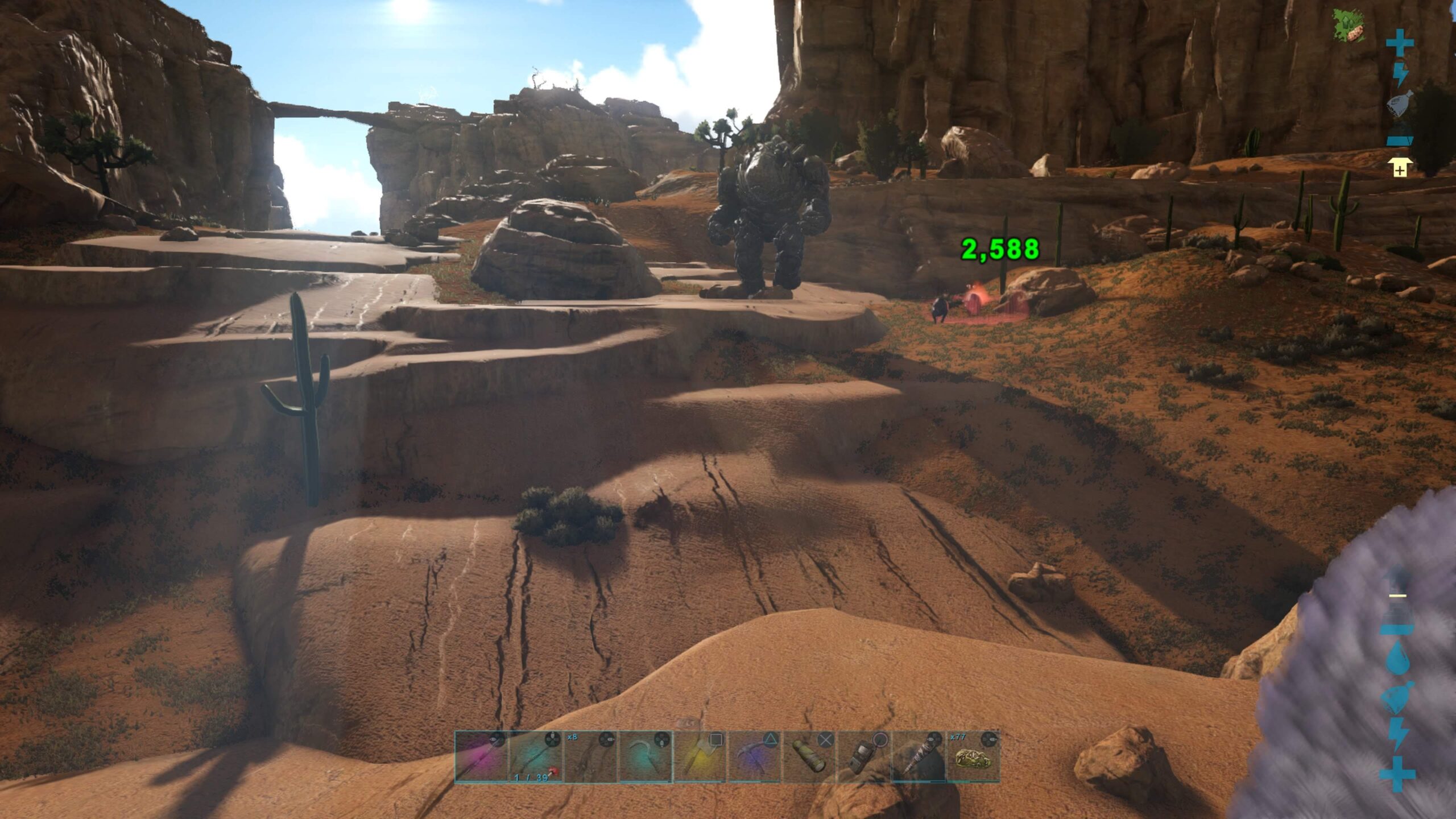 巻き戻されて砂漠よりかなり手前の崖地帯にリポップしたのはまだ良いとして、はるか空高くアルゲンが取り残されて呼び戻すこともできない状況に陥ってしまった。