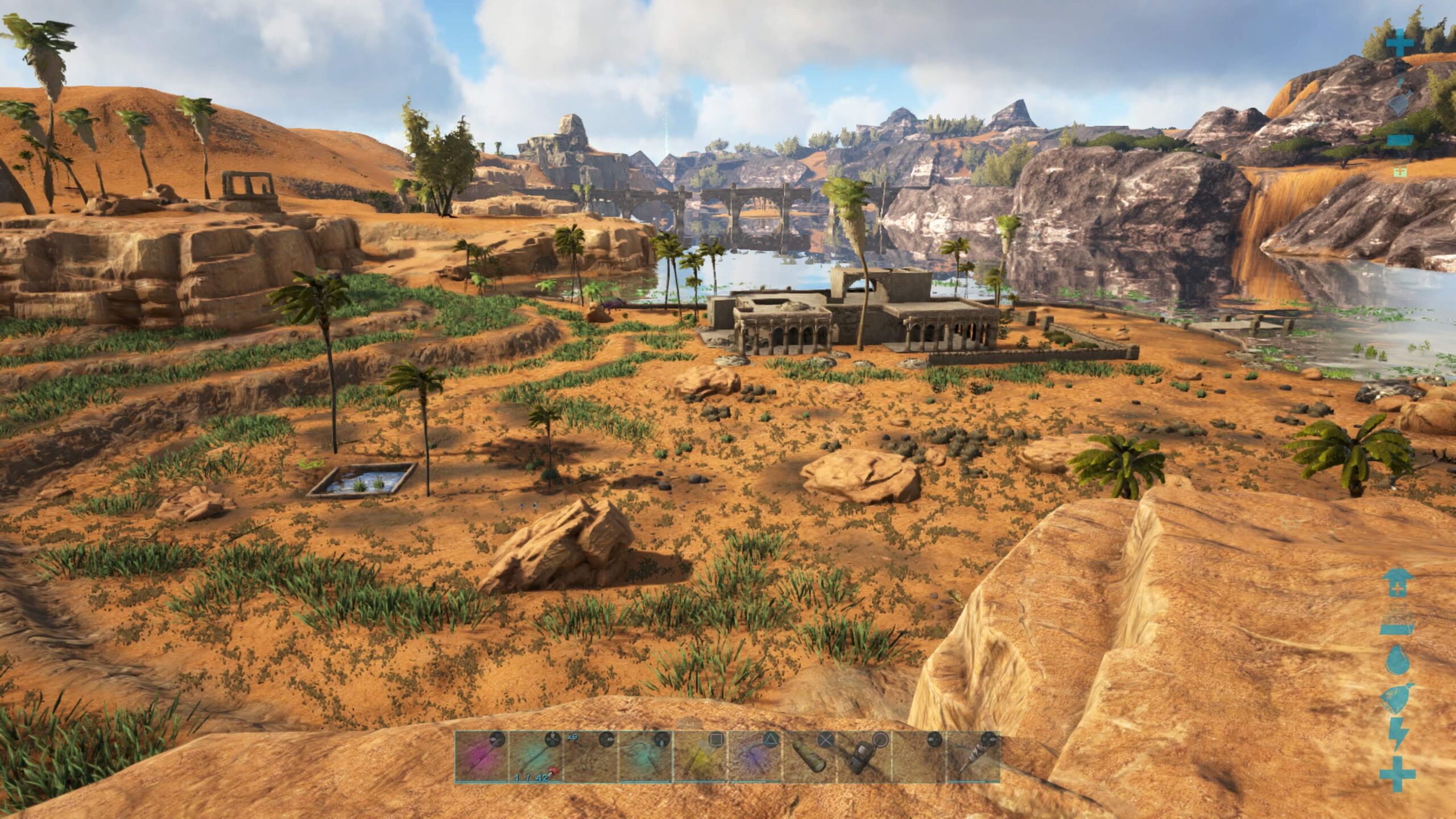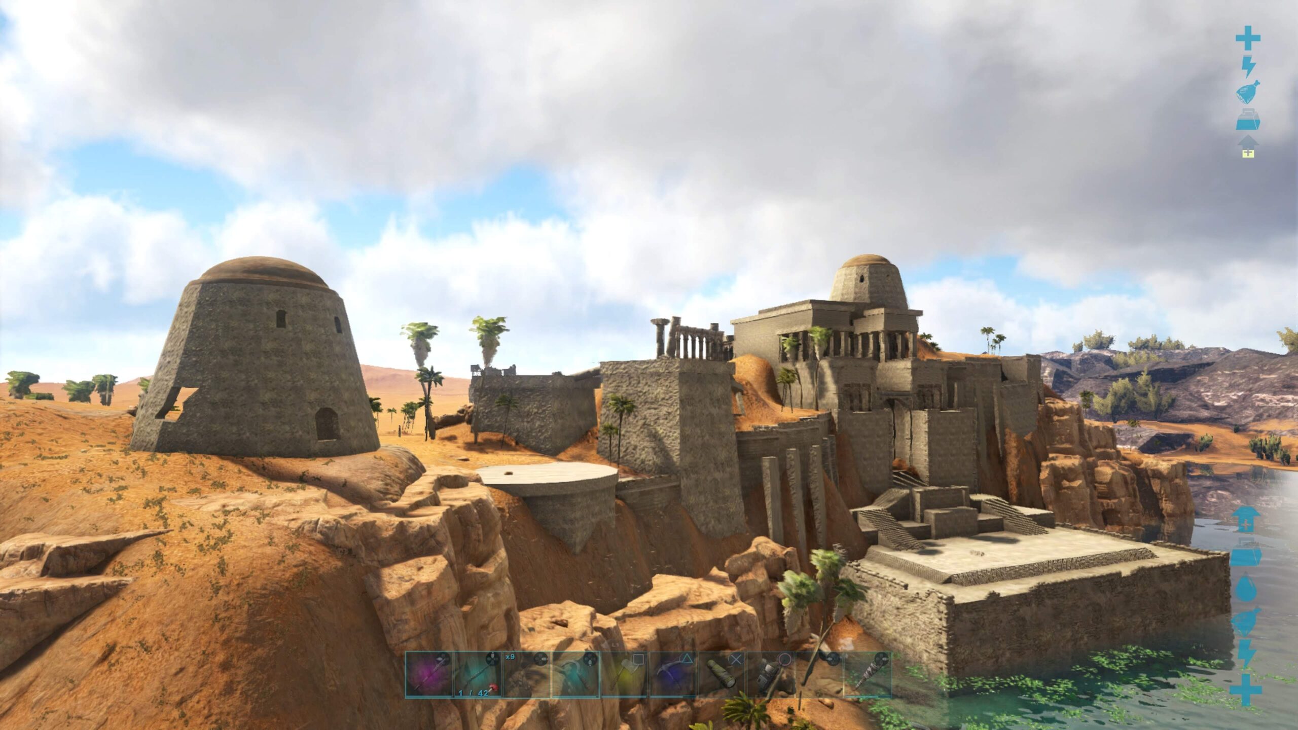 結局拠点は砂漠から出入りしやすいほうのテラスに設置。