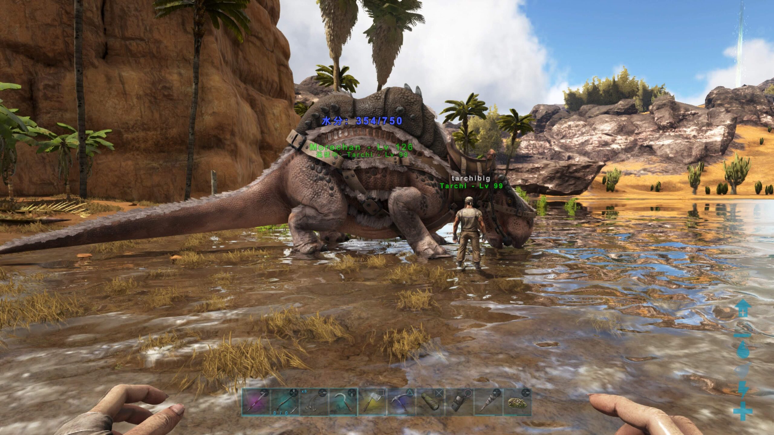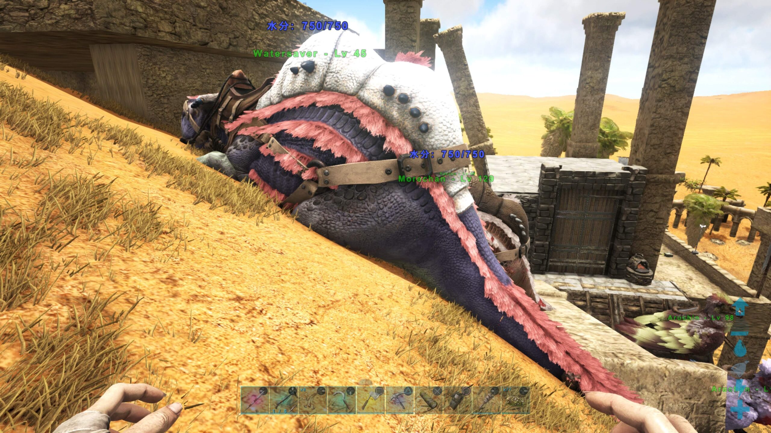 まずは砂漠の必須動物、歩く水道蛇口のモレちゃんをテイム。