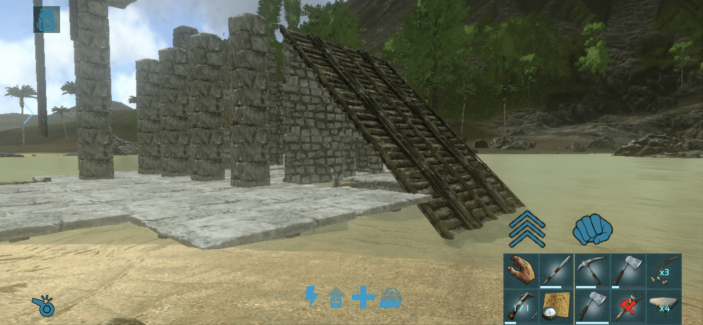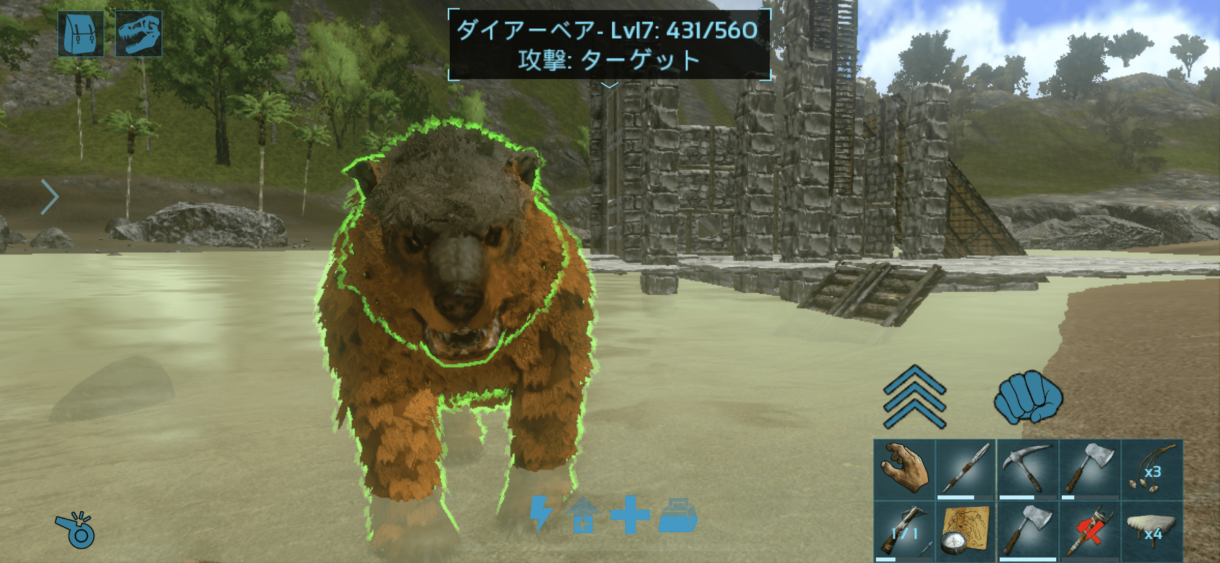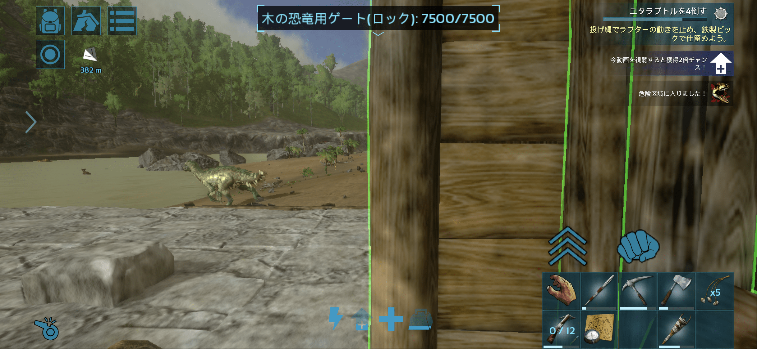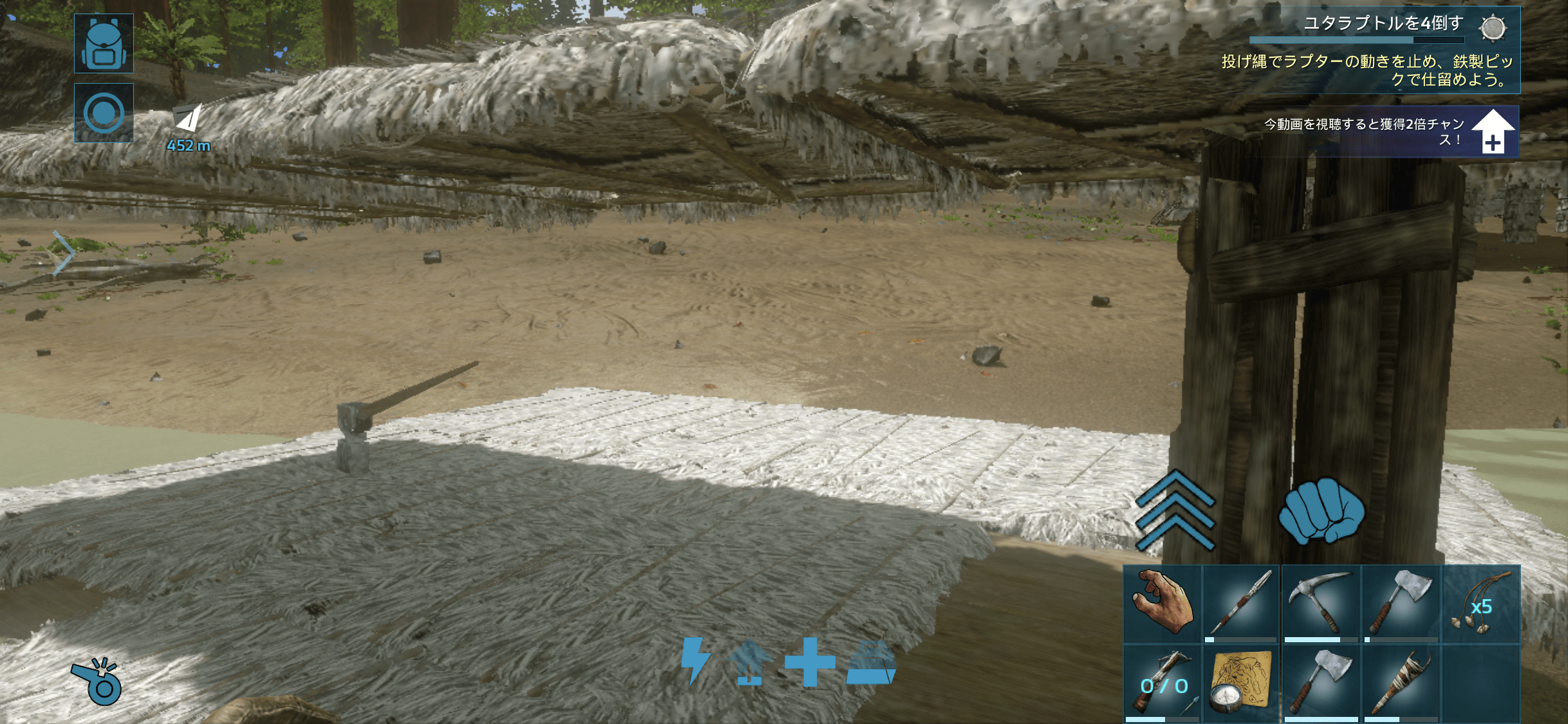 柱にすると地上からでも弓が打てるが、ユタちゃんレベルだとすり抜けてしまう。パラサウロで引っ掛かった。