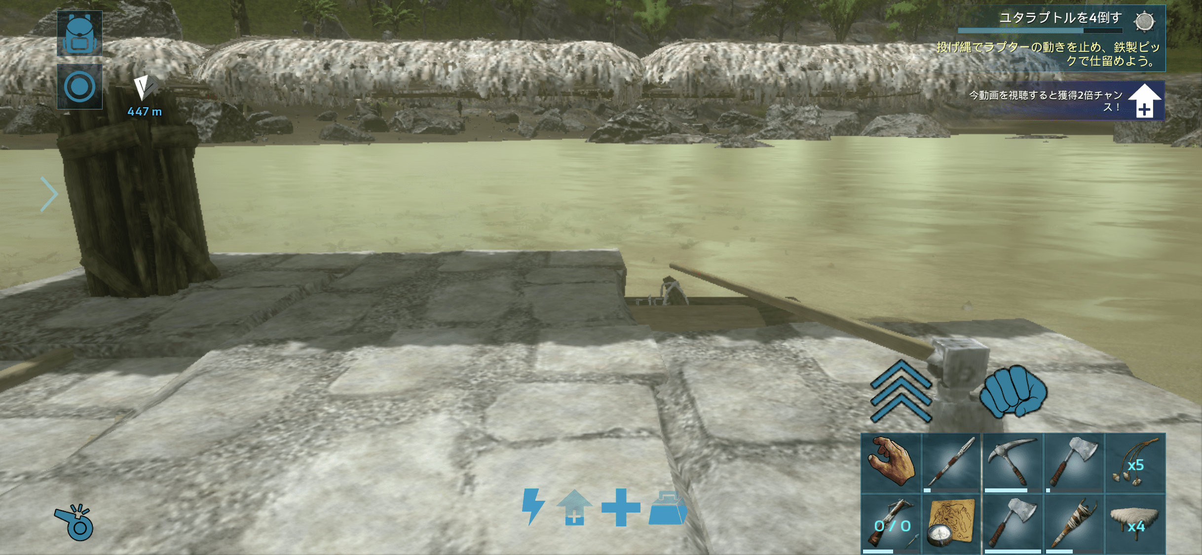 やり直すかかなり葛藤したが、とりあえず筏の罠を作りかけだったので、これを一応運用してからまた考えるかと。