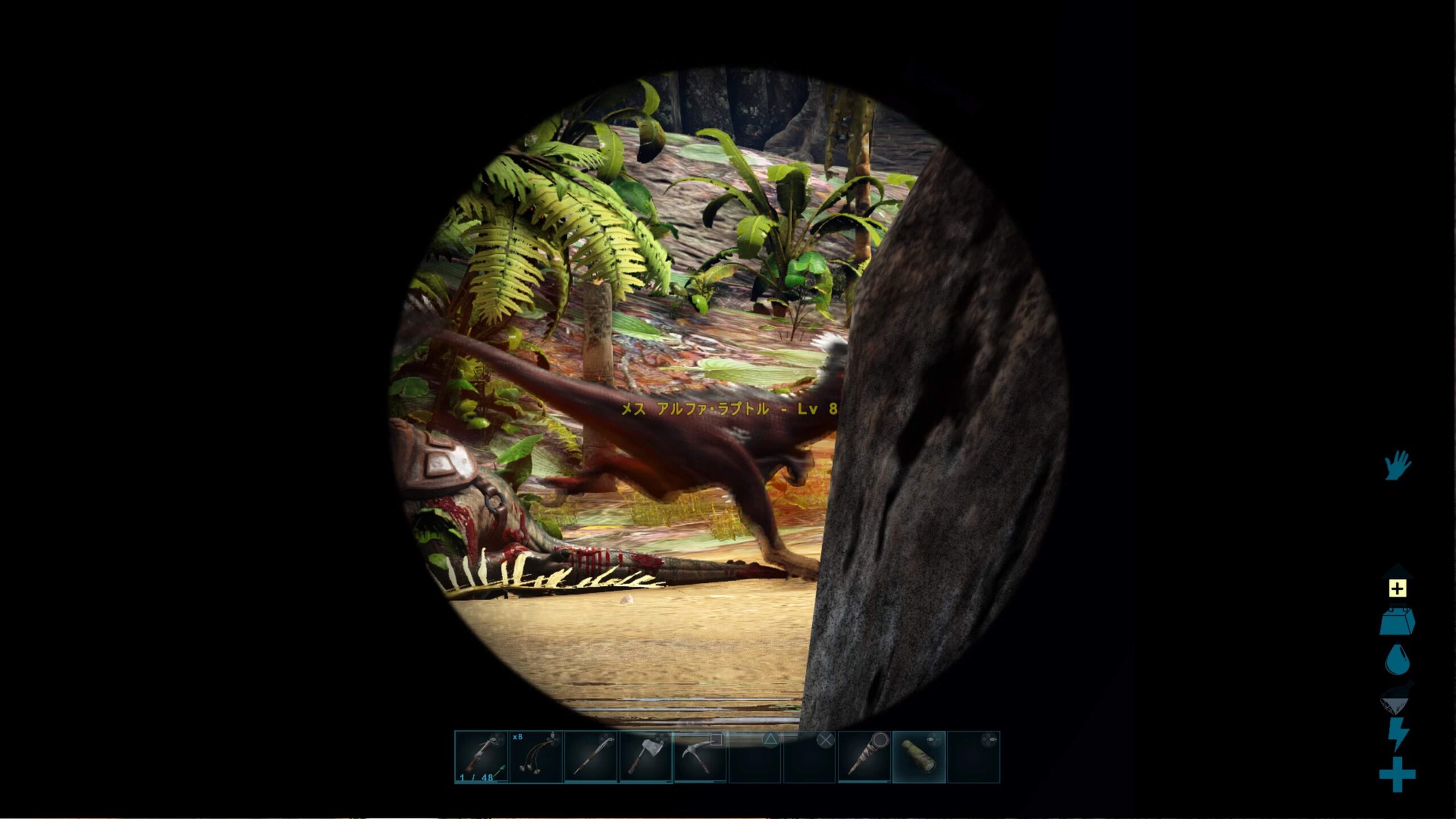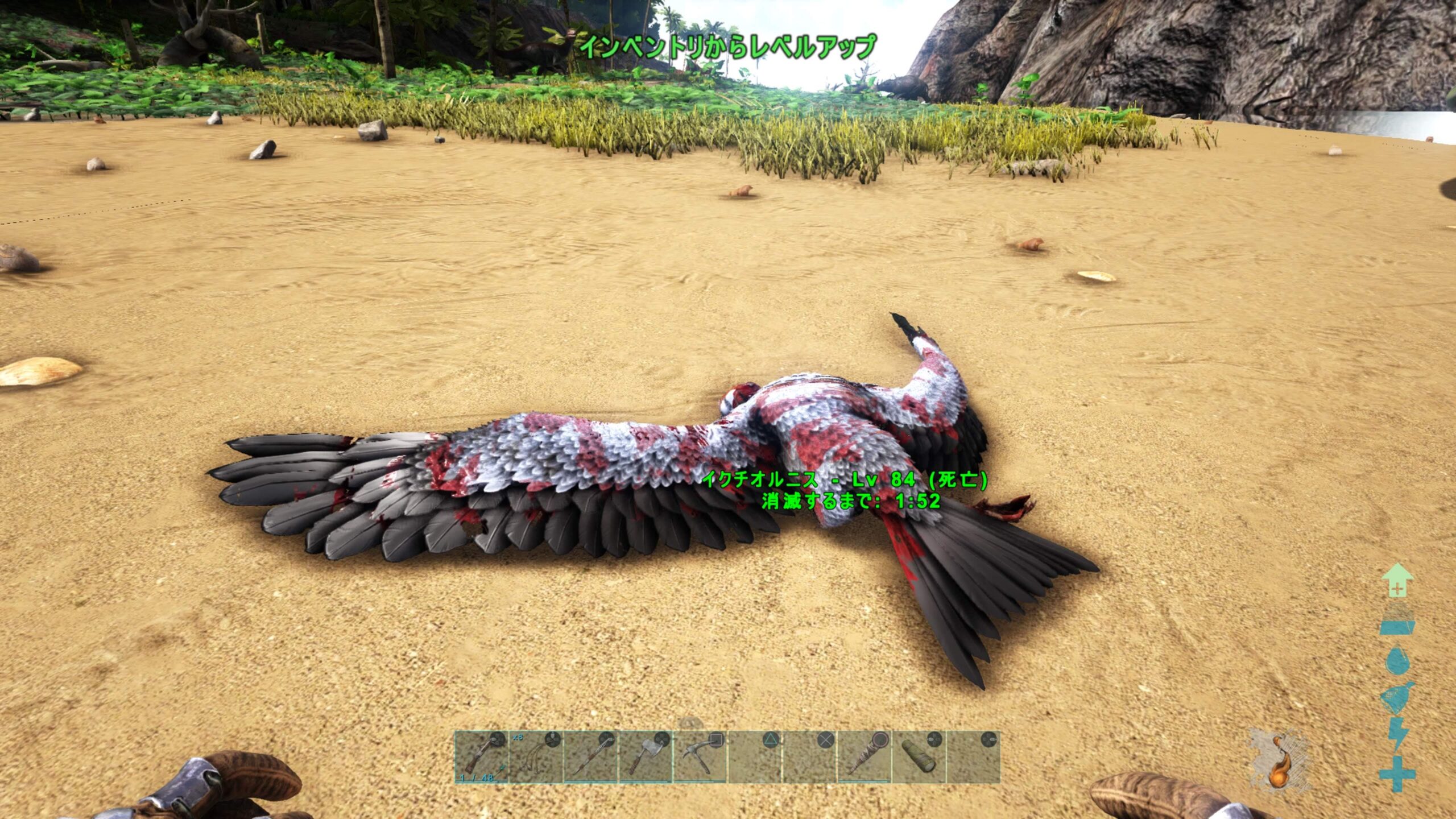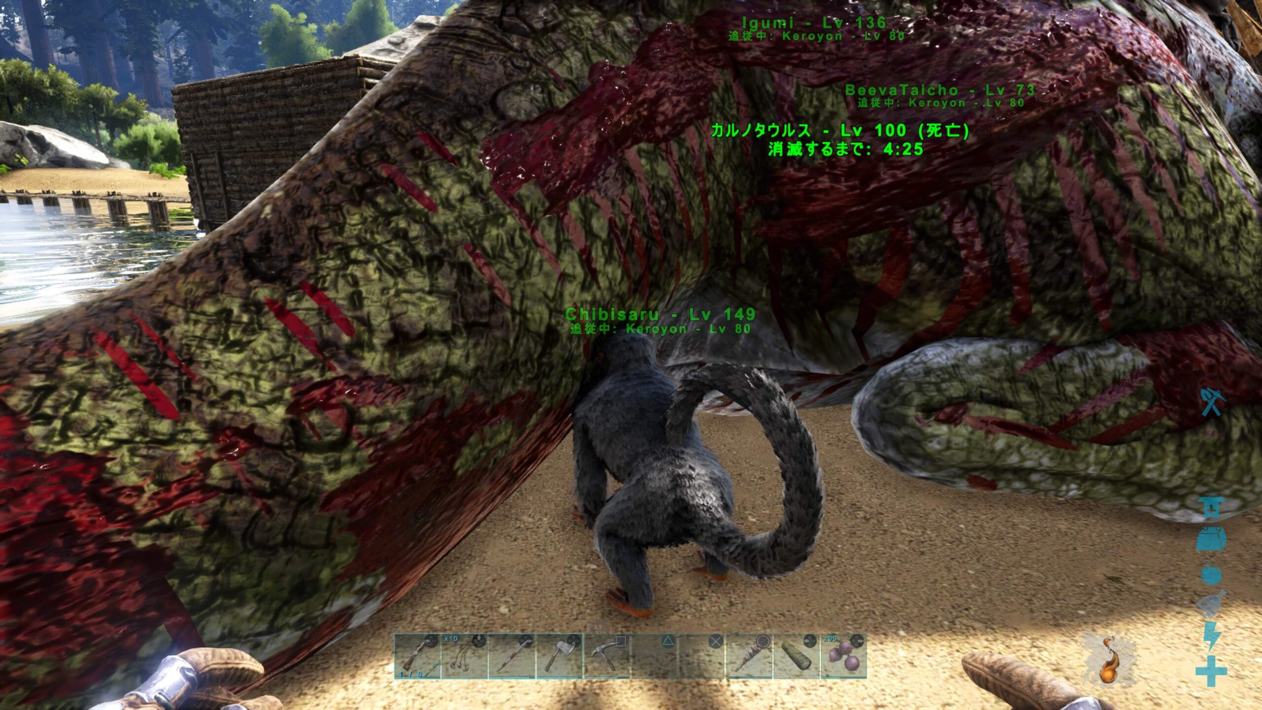 同時にアルファラプトルまで周囲に沸いて、気づいたらレベル低い方のイグアノが餌食になってました。