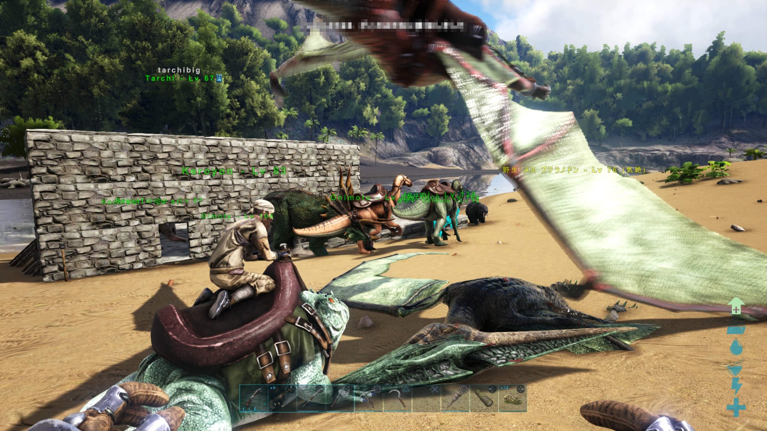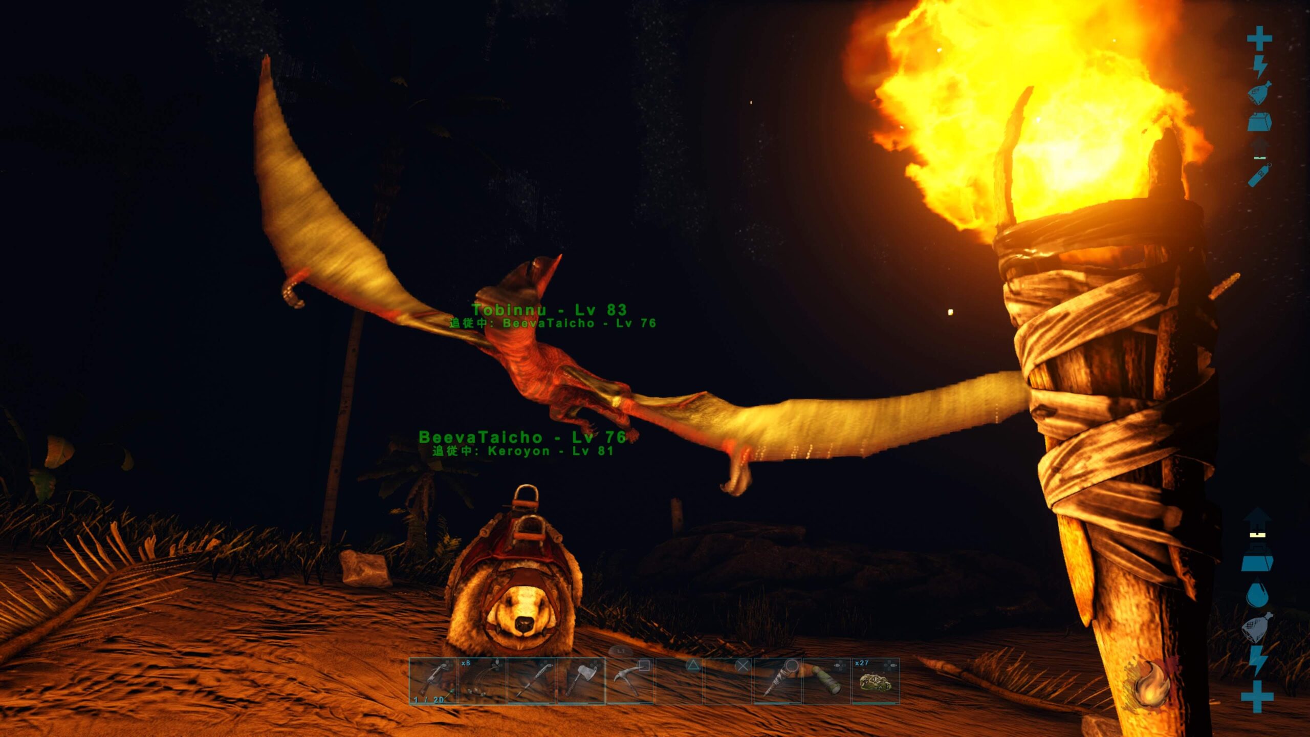 翌日すぐそばに沸いたテリジノが突撃してきて、さっとひとなでされたらプテラノ2匹とも昇天されましたΩ\ζ°)チーン。。。イクチオの呪いか?
