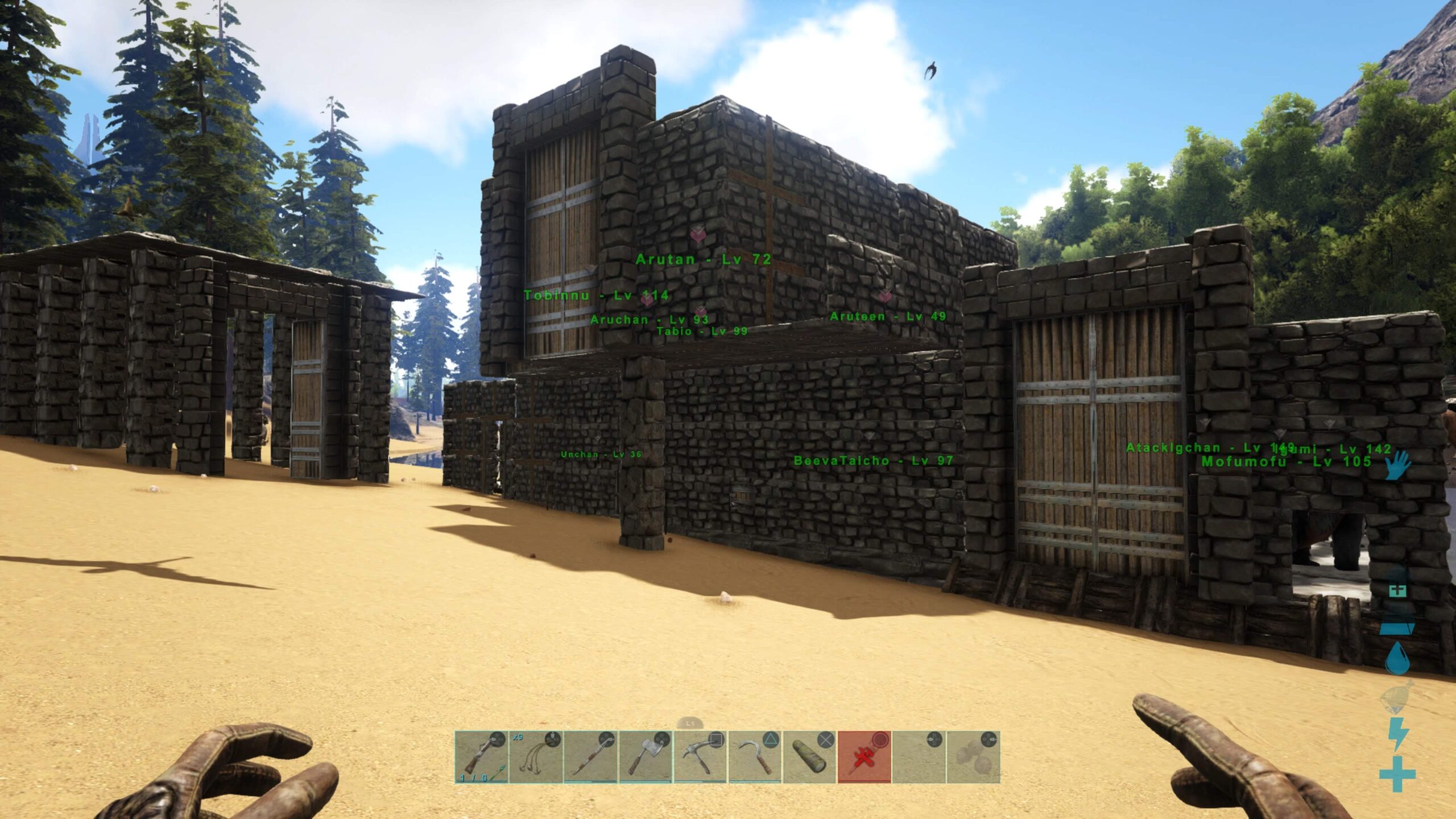 資源のリポップに邪魔にならない位置まで下がったが、あとから気づいたら裏手には森と大量に固まったベリー類の林と大きな岩がごろごろだったので、一般資源もめちゃ近くて豊富!