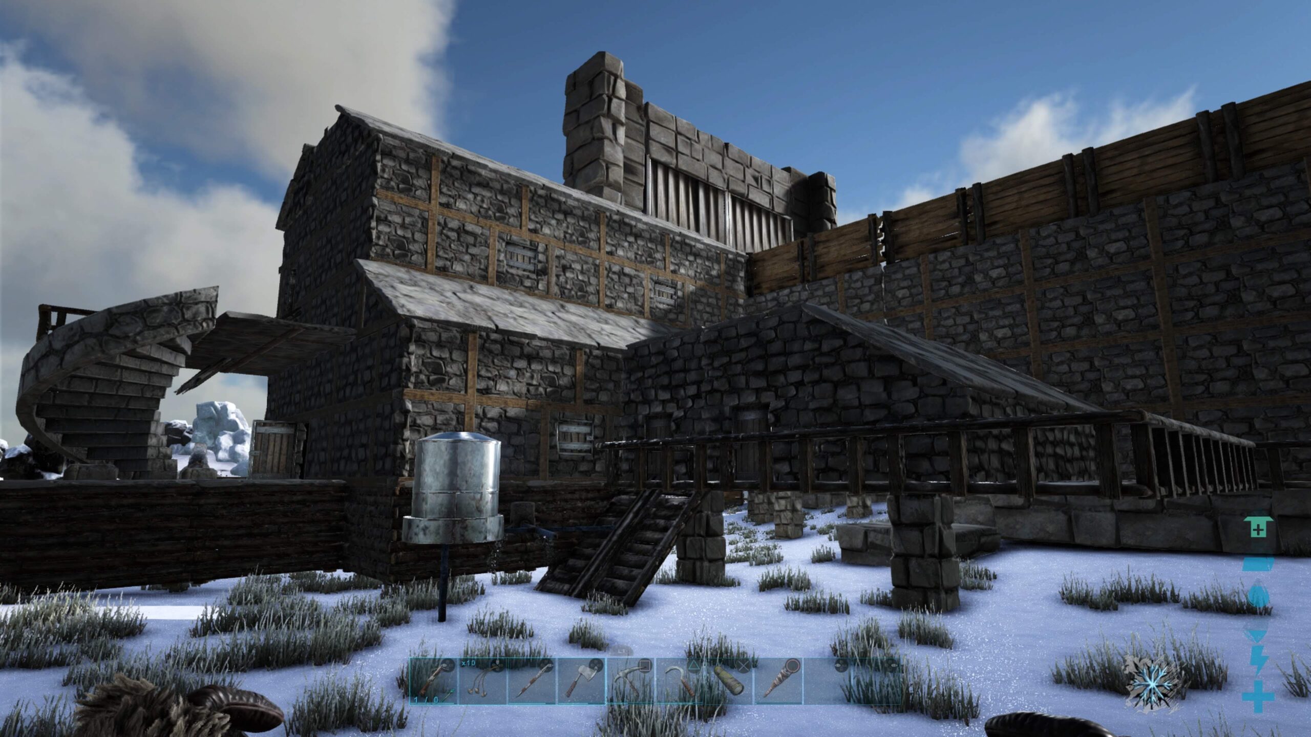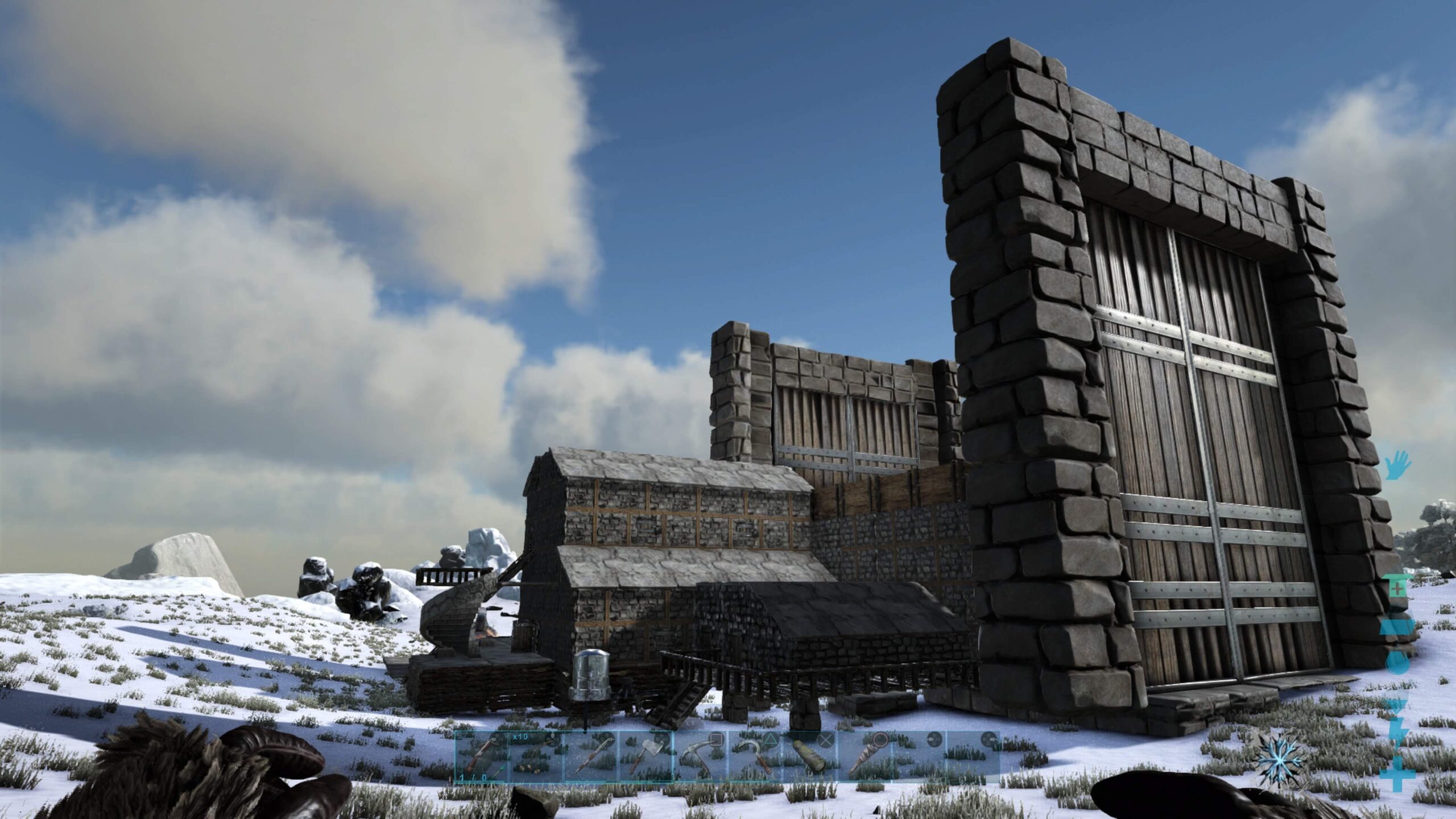 前は真珠の海近くの2段になった崖のあたりに拠点を構えたんだけど、今回はもうちょい先の黒曜石と水晶とオイル石と金鉱石が集中してるポイントの近くの平野(ゆるめの傾斜があるけど)に。